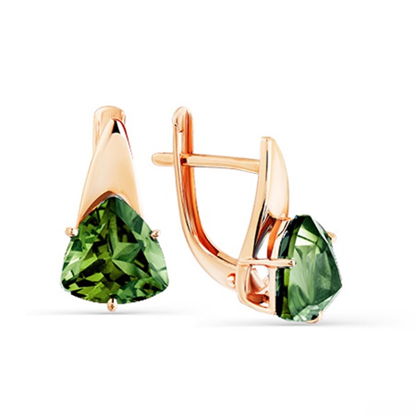 Привлекательные серьги из красного золота 585 пробы с синтетическими турмалинами эффектной формы огранки не останутся незамеченными. Благородный блеск золота акцентирует внимание на камнях темно-зеленого оттенка, и выгодно подчеркивает их насыщенный блеск. Серьги стильно выглядят, и великолепно украсят современные образы обладательницы. Покупайте актуальное украшение по выгодной цене в магазинах Мир Золота.