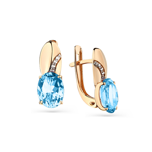 Серьги из красного золота 585 пробы с изумительным блеском лазурных топазов swiss и прозрачными фианитами смотрятся очень нежно и женственно. Очаровательное украшение станет изысканной деталью повседневного или вечернего образа, и подчеркнет красоту и утонченный вкус владелицы. Тип замка - английский, надежно зафиксирует украшение. Покупайте серьги по выгодной цене в магазинах Мир Золота.
