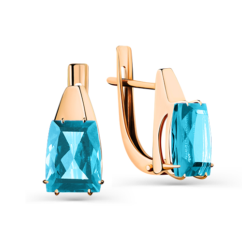 Серьги с привлекательными топазами ситаллами swiss необычной формы огранки изготовлены из красного золота 585 пробы. Изысканное украшение с ярким блеском голубых камней выразительно смотрится, и будет элегантным дополнением стильного современного образа владелицы. Приобретайте ювелирное украшение для себя или в подарок по выгодным ценам в Мир Золота.