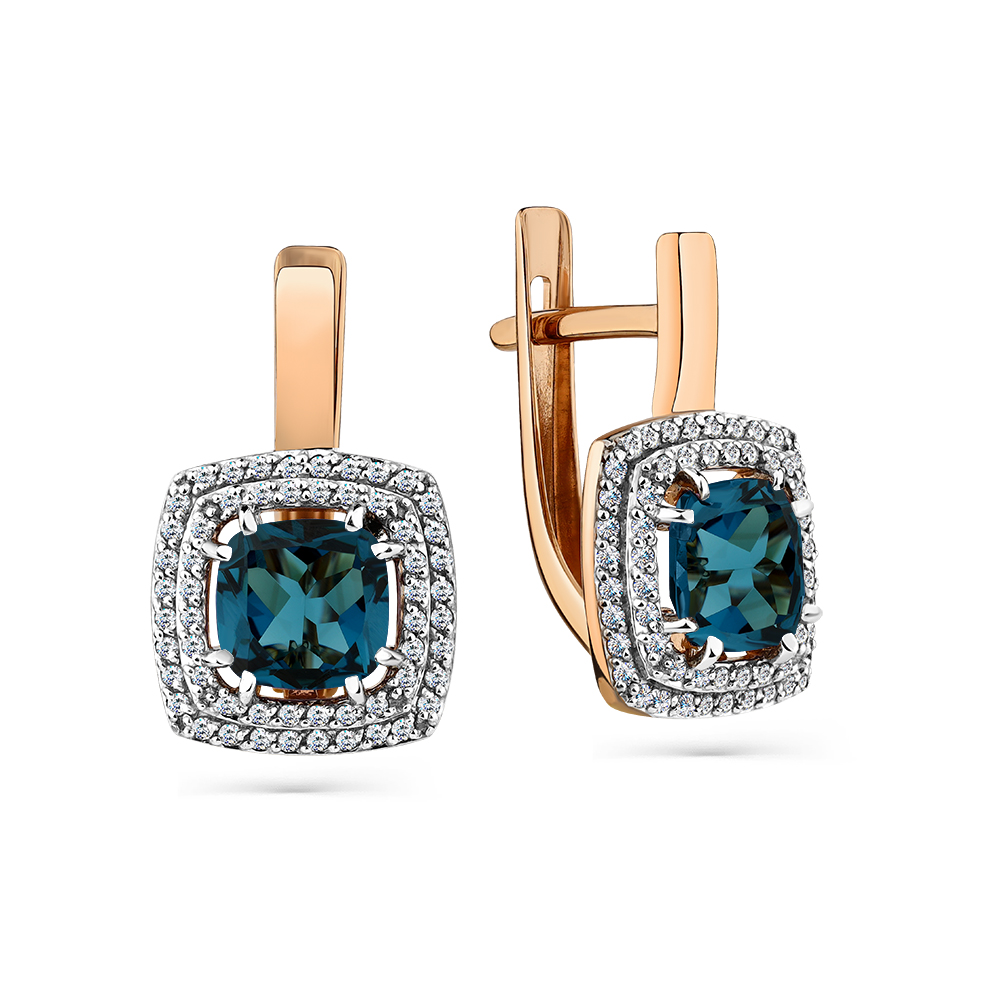 Серьги из красного золота с топазами и фианитами