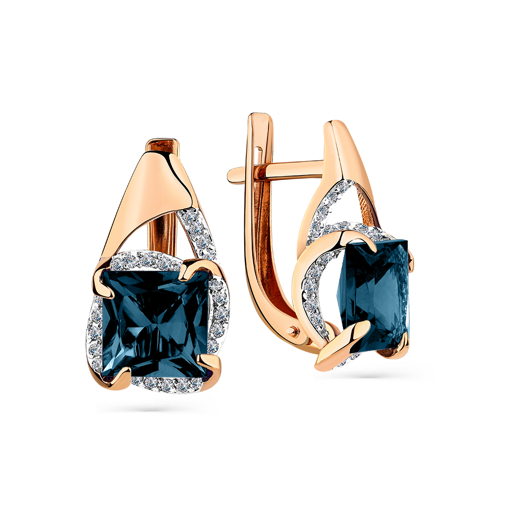 Серьги из красного золота с топазами и фианитами