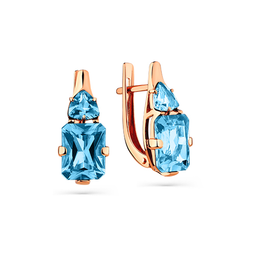 Яркие серьги из красного золота 585 пробы с натуральными голубыми топазами swiss отлично дополнят стильный женский образ. Удивительный прозрачный блеск топазов насыщенного оттенка приковывает взгляд, украшение великолепно подчеркнет красоту и изысканность современного образа владелицы. Приобретайте серьги для себя или в подарок по выгодным ценам в магазинах Мир Золота.