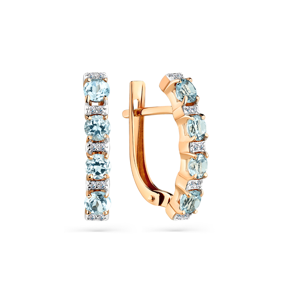Серьги с дорожками из нежно-голубых топазов, разбавленных сияющими вставками с прозрачными фианитами, выполнены из красного золота 585 пробы. Завораживающее сияние небесно-голубых камней, подчеркнутых искристыми фианитами, не останется незамеченным. Изящное украшение разнообразит любой привычный образ, покоряя своей красотой и изумительным блеском. Покупайте серьги по выгодной цене в магазинах Мир Золота.