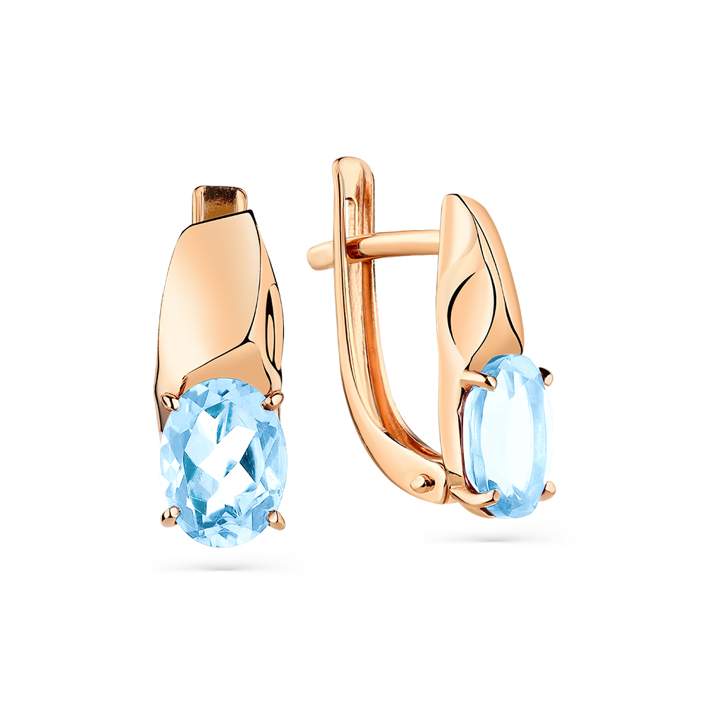 Элегантные серьги из красного золота 585 пробы с натуральными голубыми топазами выглядят стильно и достойно. Благодаря универсальному дизайну, украшение подойдет к любому наряду, выразительный акцент нежных камней внесет изюминку в выбранный образ. Комфортный английский замок надежно зафиксирует украшение. Приобретайте серьги для себя или в подарок по выгодным ценам в магазинах Мир Золота.