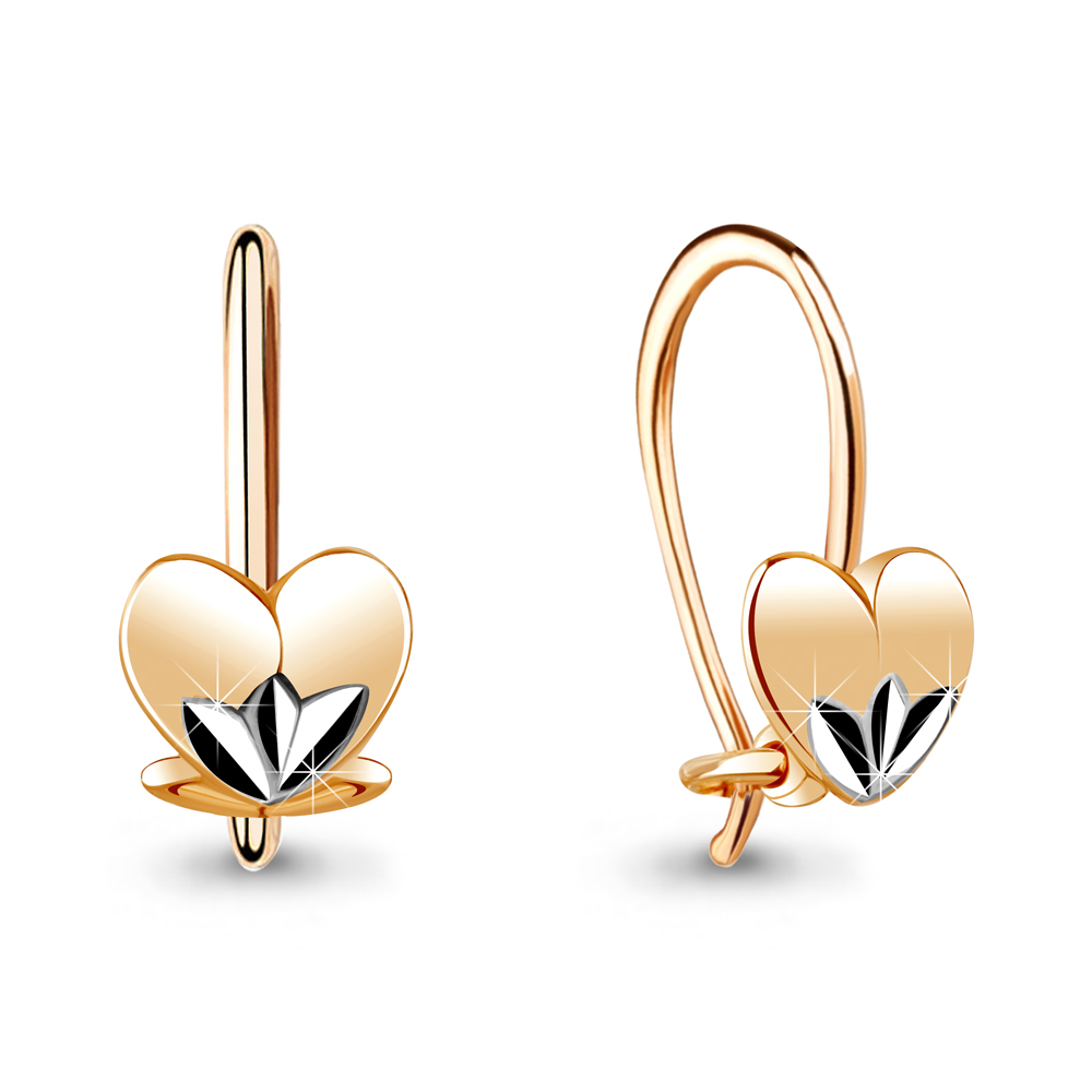 Миниатюрные детские сережки в виде изящных сердечек выполнены из красного и белого золота 585 пробы. Маленькие легкие сердечки отлично смотрятся на детском ушке и подойдут для самых маленьких. Комфортные сережки идеальны для первого ювелирного украшения малышки, и станут милым подарком. Приобретайте чудесные серьги для детей выгодно в магазинах Мир Золота.