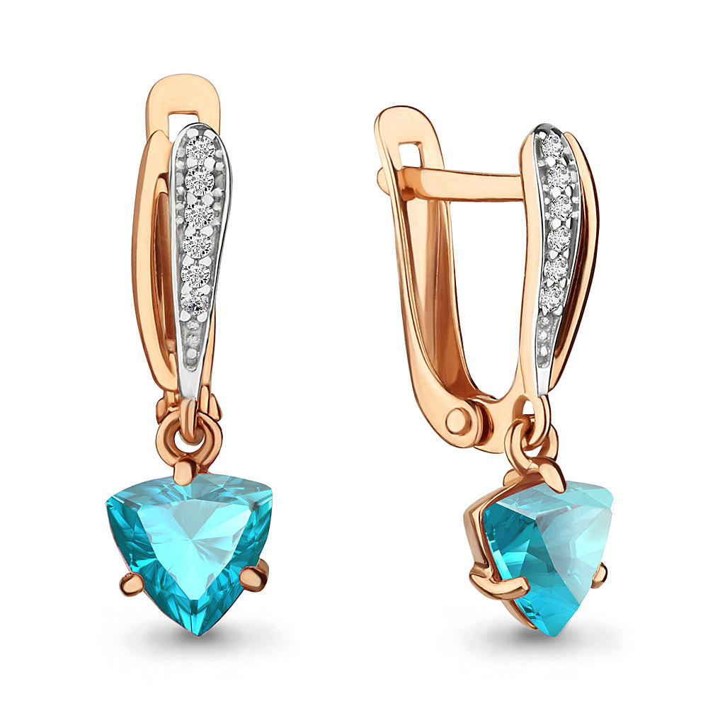 Изящные серьги с подвесками с натуральными топазами swiss необычной формы огранки и прозрачными фианитами выполнены из красного золота 585 пробы. Яркие топазы насыщенного оттенка завораживают своим удивительным сиянием, красиво переливаясь на свету. Дополните свой идеальный образ изысканным акцентом, приобретайте очаровательное украшение по выгодной цене в магазинах Мир Золота.