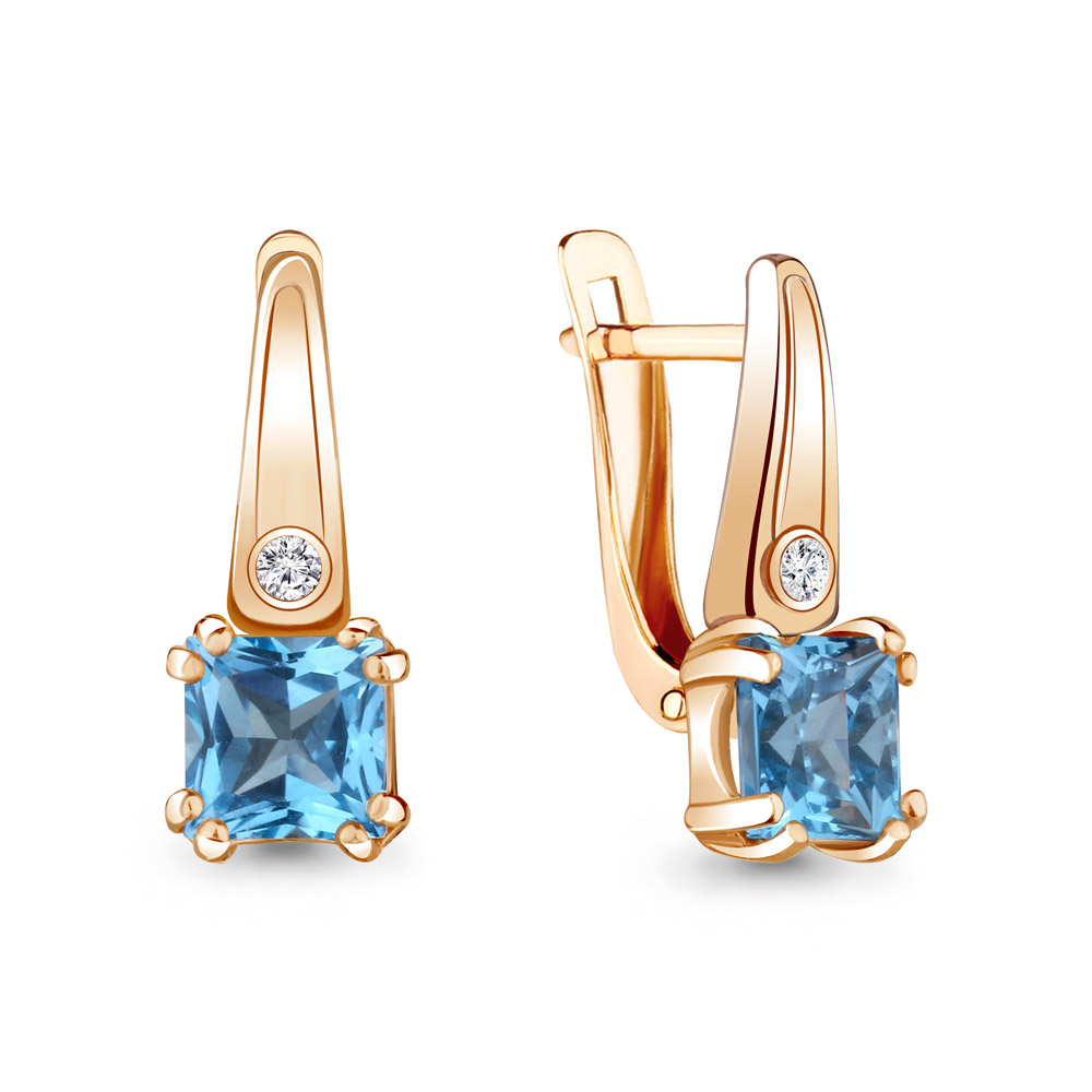 Элегантные серьги из красного золота 585 пробы с яркими голубыми топазами swiss и вставками с искристыми фианитами отлично дополнят стильный образ современной леди. Украшение с выразительными топазами насыщенного оттенка подчеркнет привлекательность и безупречный вкус владелицы. Приобретайте серьги с надежным английским замком по выгодным ценам в магазинах Мир Золота.