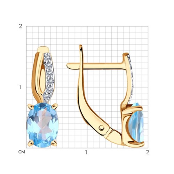 Серьги на английском замке с голубыми топазами и дорожками из фианитов выполнены из красного золота 585 пробы в привлекательном дизайне. Чудесные нежные топазы в сочетании с искристым блеском фианитов притягательно смотрятся, красиво переливаясь на свету, и станут очаровательным акцентом женского образа. Приобретайте ювелирное украшение по выгодной цене в магазинах Мир Золота.