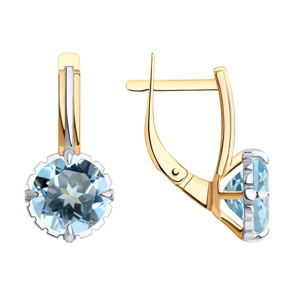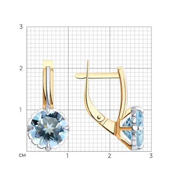 Серьги с английским замком с натуральными голубыми топазами выполнены в привлекательном дизайне из красного золота 585 пробы. Очаровательное украшение с нежным прозрачным блеском полудрагоценных камней будет прекрасным подарком по любому поводу, и эффектно преобразит привычный женский образ. Приобретайте ювелирное украшение по выгодной цене в магазинах Мир Золота.