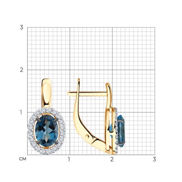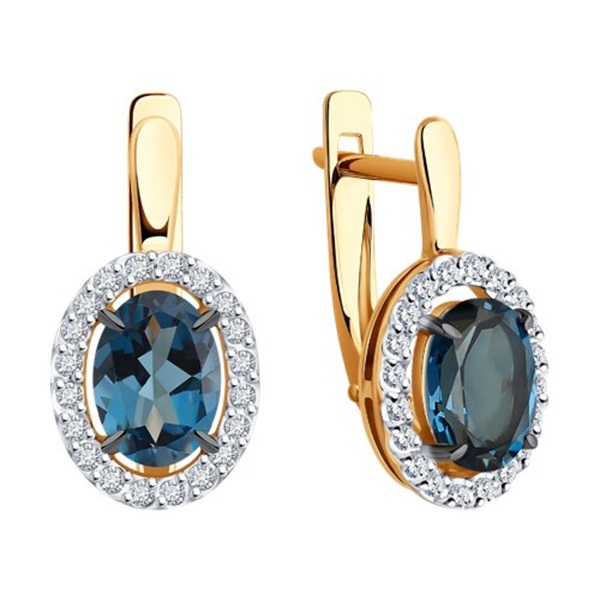 Серьги классического дизайна выполнены из красного золота 585 пробы и украшены топазами Лондон в окружении сияющих фианитов. Неповторимый блеск топазов в кристальном кружеве фианитов очаровывает с первого взгляда, украшение благородно и нарядно смотрится, и станет незаменимым аксессуаром в женском гардеробе. Тип замка: английский. Приобретайте серьги по выгодной цене в магазинах Мир Золота.