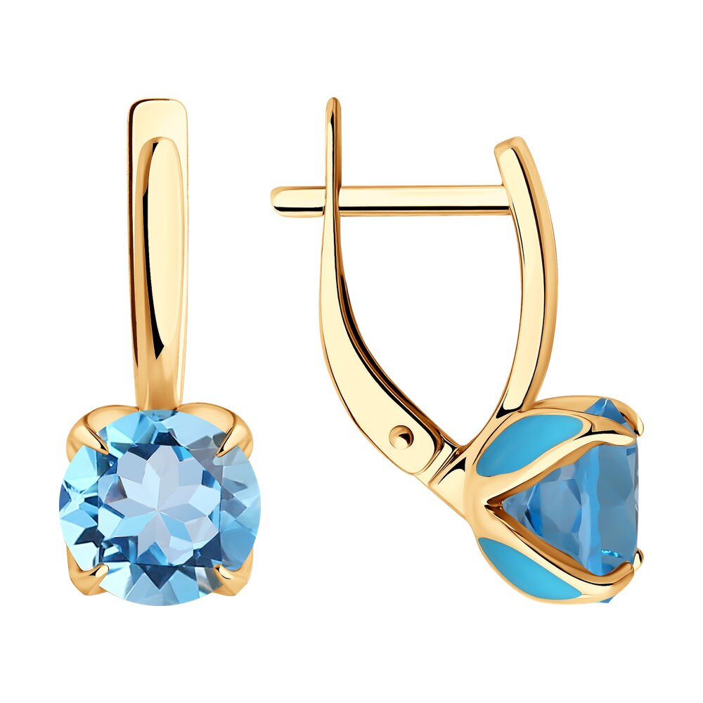 Классические серьги с английским замком, выполненные из красного золота 585 пробы с натуральными топазами, станут ярким акцентом женского образа. Насыщенный блеск выразительных лазурных камней приковывает взгляд, эффектная закрепка придает воздушности, и выгодно подчеркивает природную красоту и изумительное сияние топазов. Приобретайте украшение для безупречного женственного образа, выгодно в магазинах Мир Золота.