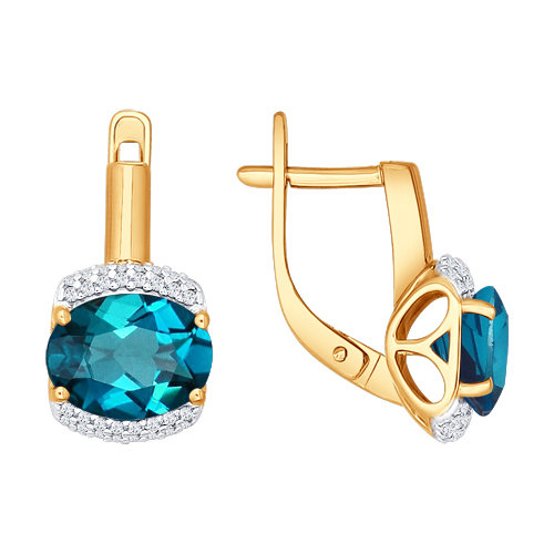 Выразительные серьги из красного золота 585 пробы с крупными Лондон топазами и кристальными фианитами эффектно подчеркнут привлекательность женственного образа. Безупречное украшение в современном исполнении, с ярким акцентом притягательных топазов, выглядит стильно и элегантно, и великолепно дополнит вечерние наряды. Приобретайте серьги по выгодной цене в магазинах Мир Золота.