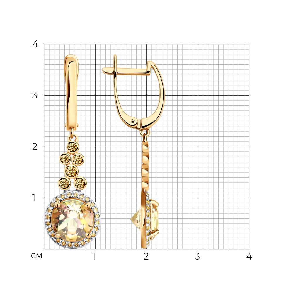 Превосходные серьги с подвесками с топазами SWAROVSKI и цветными фианитами выполнены из красного золота 585 пробы. Привлекательные топазы необычного оттенка эффектно дополнены золотистым блеском фианитов, и красиво переливаются на свету. Серьги великолепно смотрятся, и позволят создать неповторимый женственный образ. Приобретайте серьги с надежным английским замком по выгодной цене в магазинах Мир Золота.