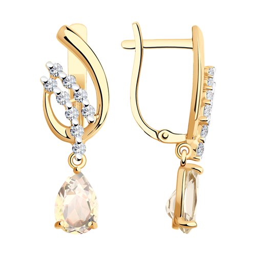 Серьги из красного золота с топазами и фианитами
