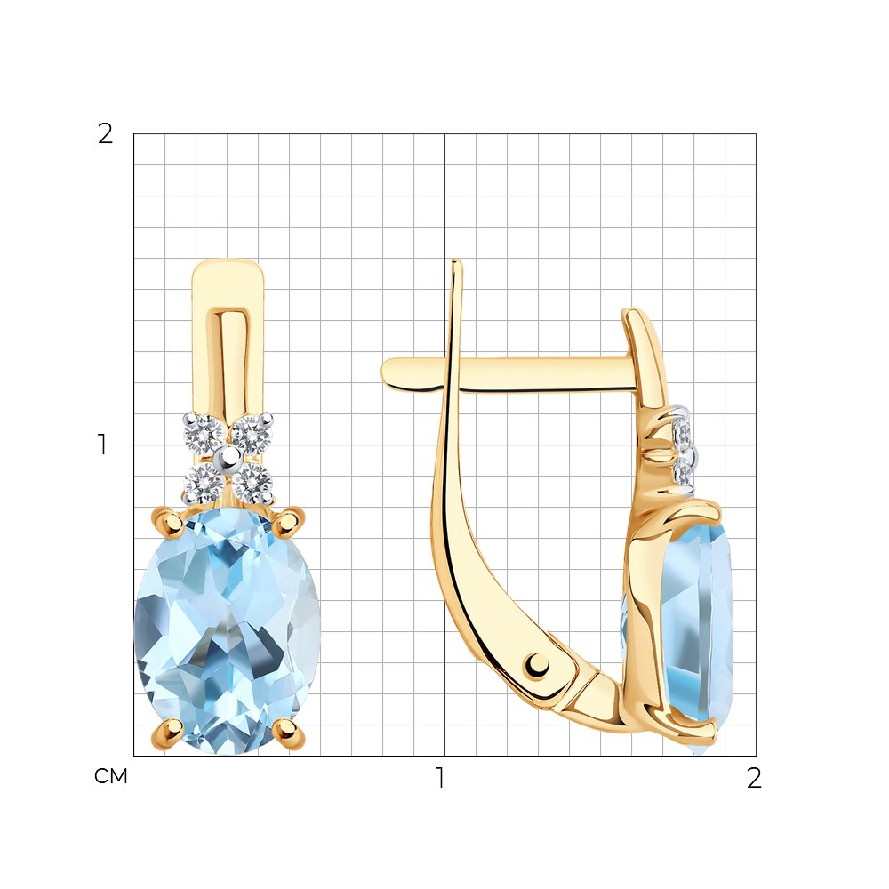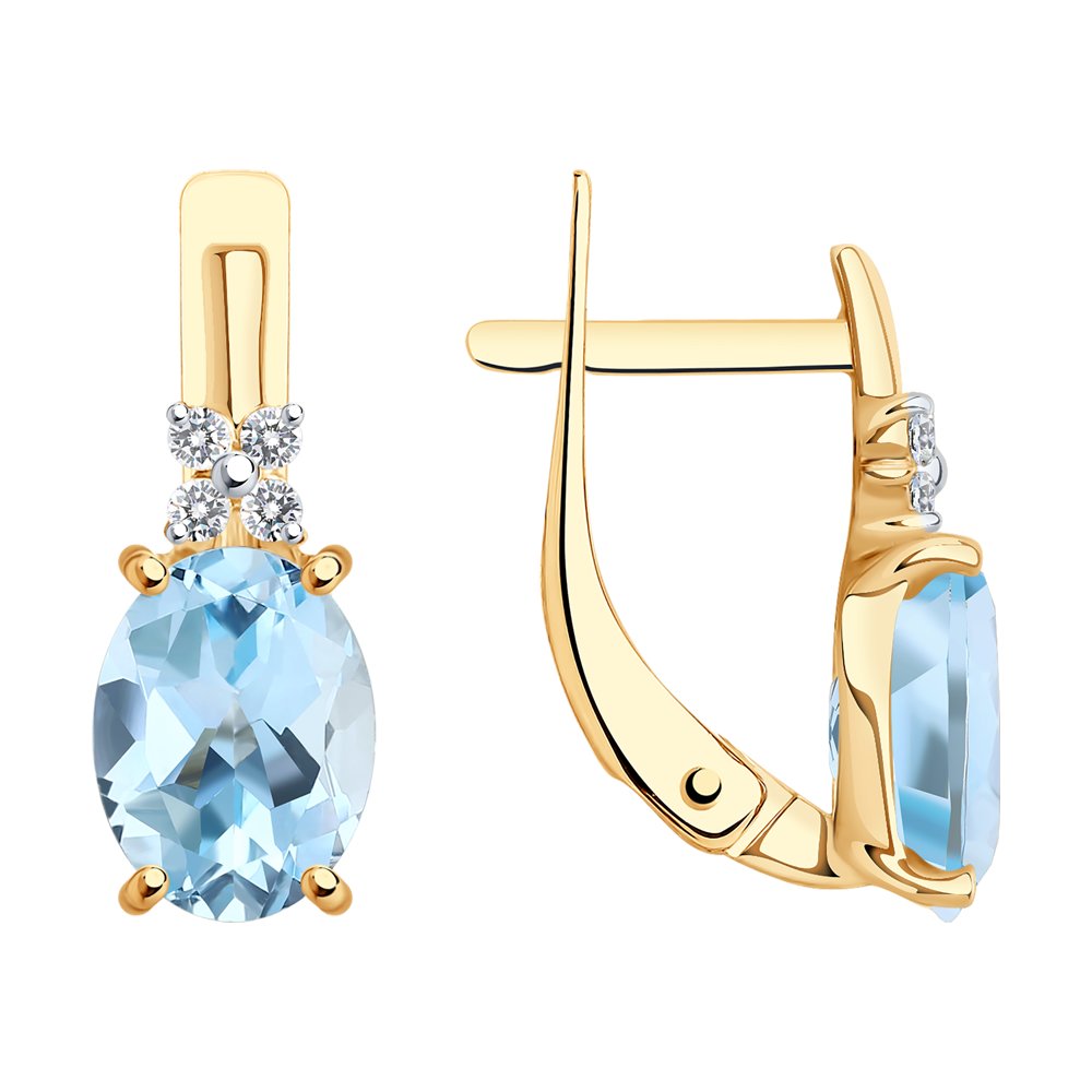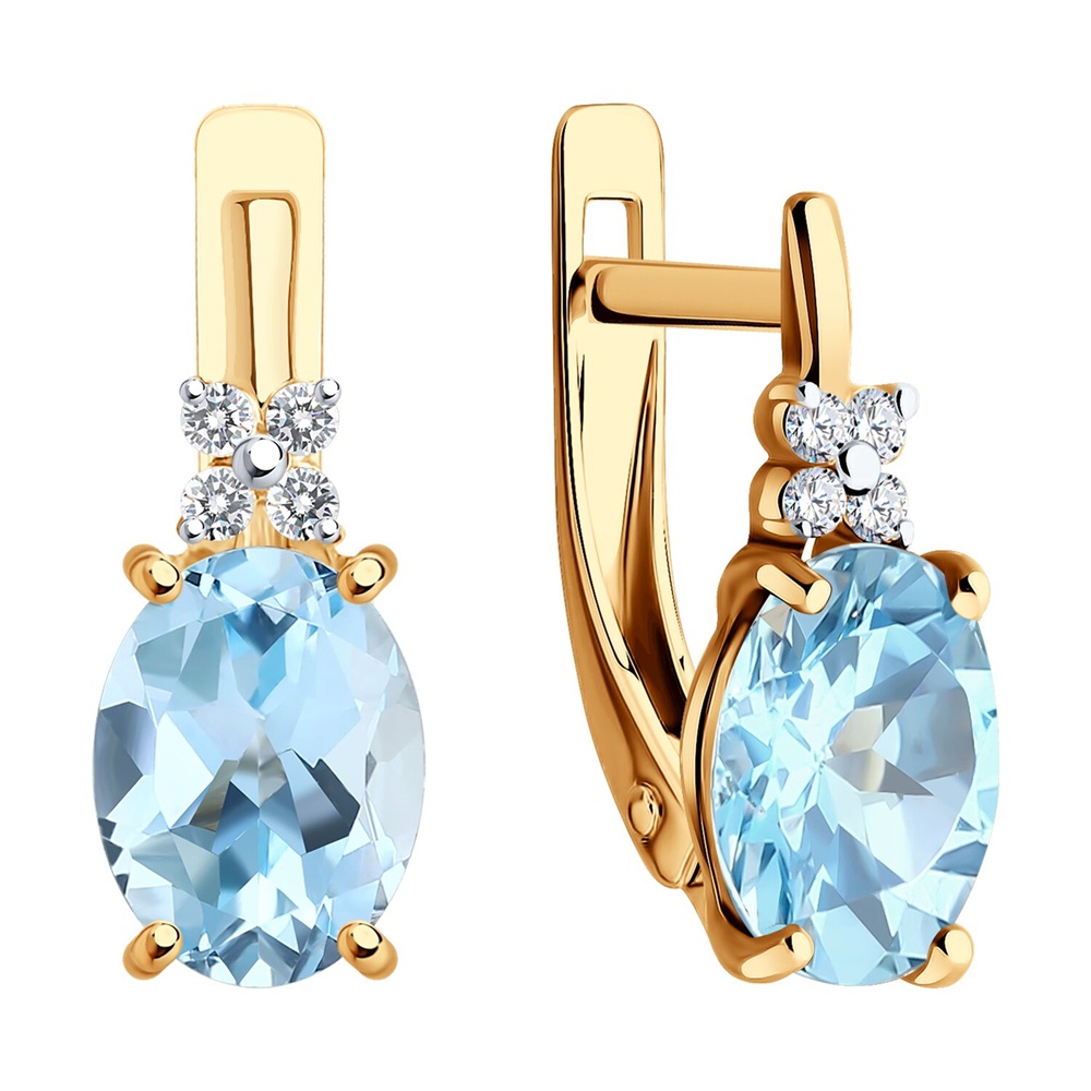 Серьги из красного золота 585 пробы украшены голубыми топазами и симпатичными вставками с фианитами. Привлекательный дизайн станет неотъемлемой деталью изящного женственного образа, дополнив его изумительным блеском ювелирных камней. Украшение аккуратно и нежно смотрится на ушке, и будет замечательным подарком по любому поводу. Приобретайте серьги по выгодной цене в магазинах Мир Золота.