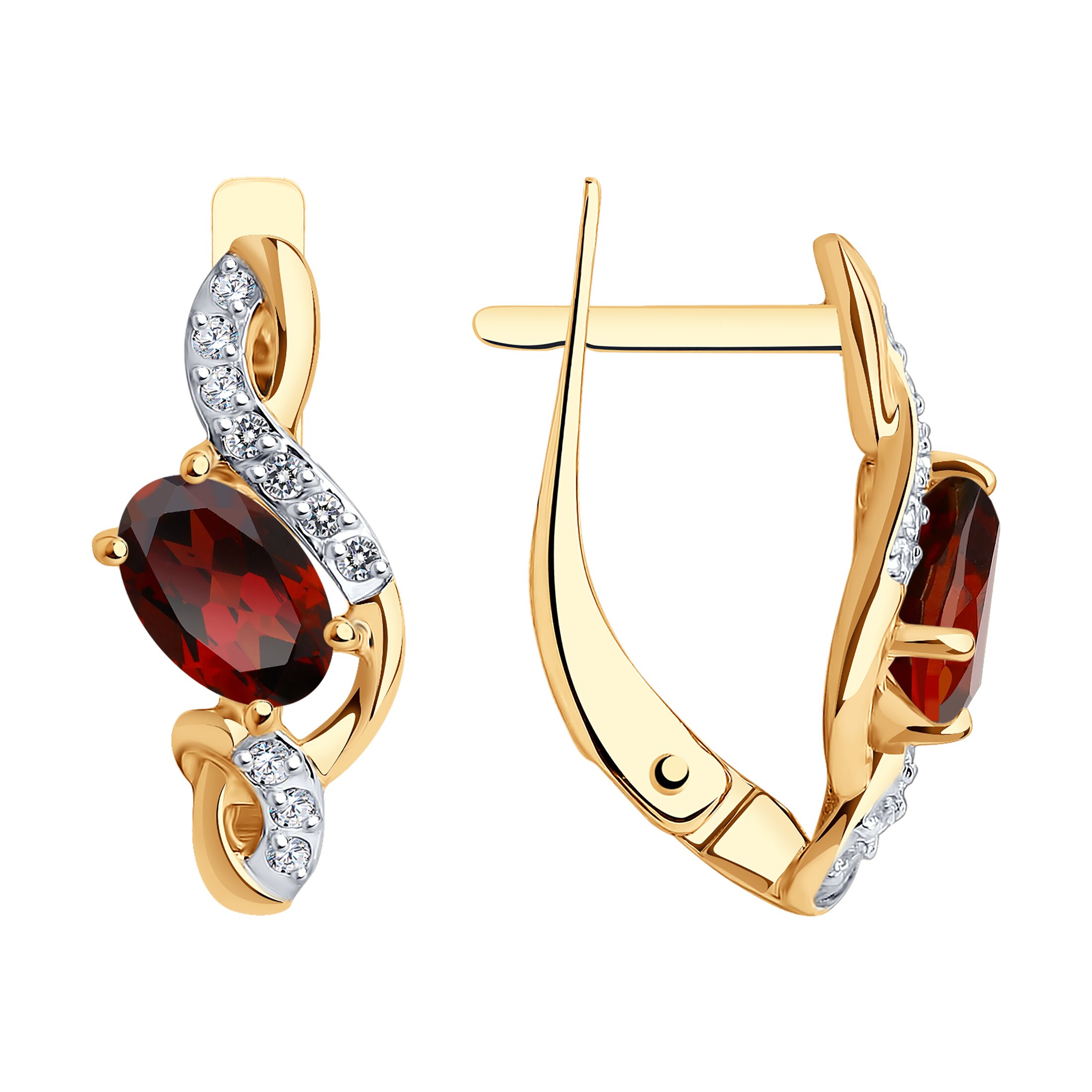 —Серьги из красного золота с гранатами и фианитами