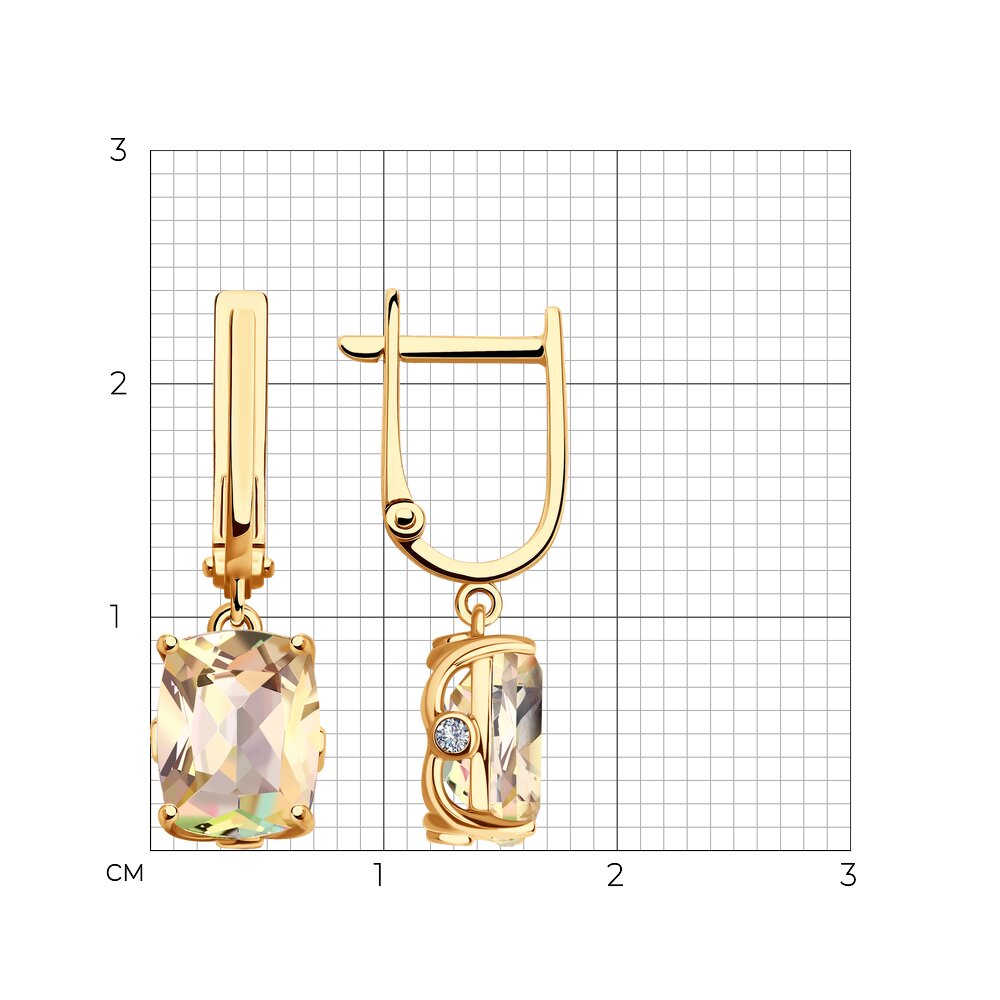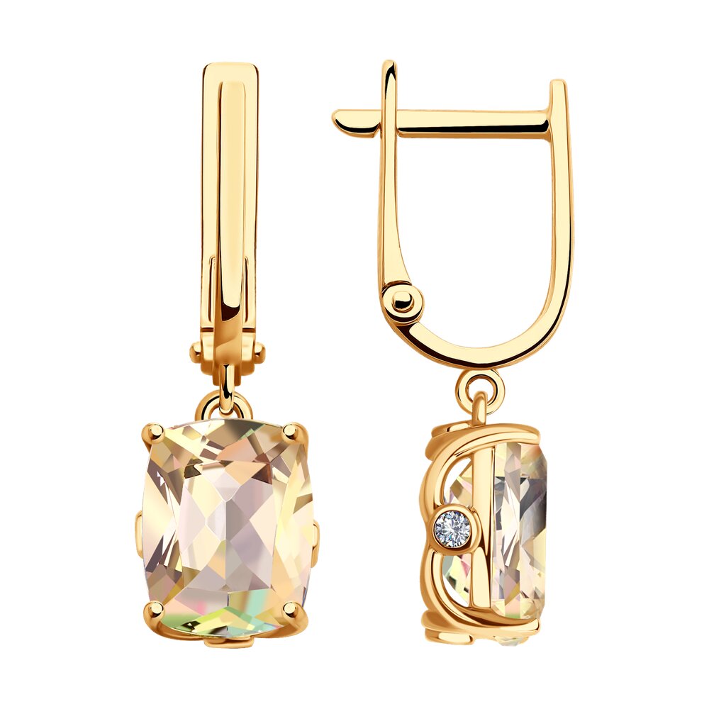 Серьги с подвесками с топазами SWAROVSKI эффектной формы огранки и кристальными фианитами выполнены в интересном дизайне из красного золота 585 пробы. Украшение с нежным сиянием камней добавит владелице особого шарма и очарования, и станет загадочной изюминкой женского образа. Комфортный английский замком надежно зафиксирует украшение. Приобретайте серьги выгодно в магазинах Мир Золота.