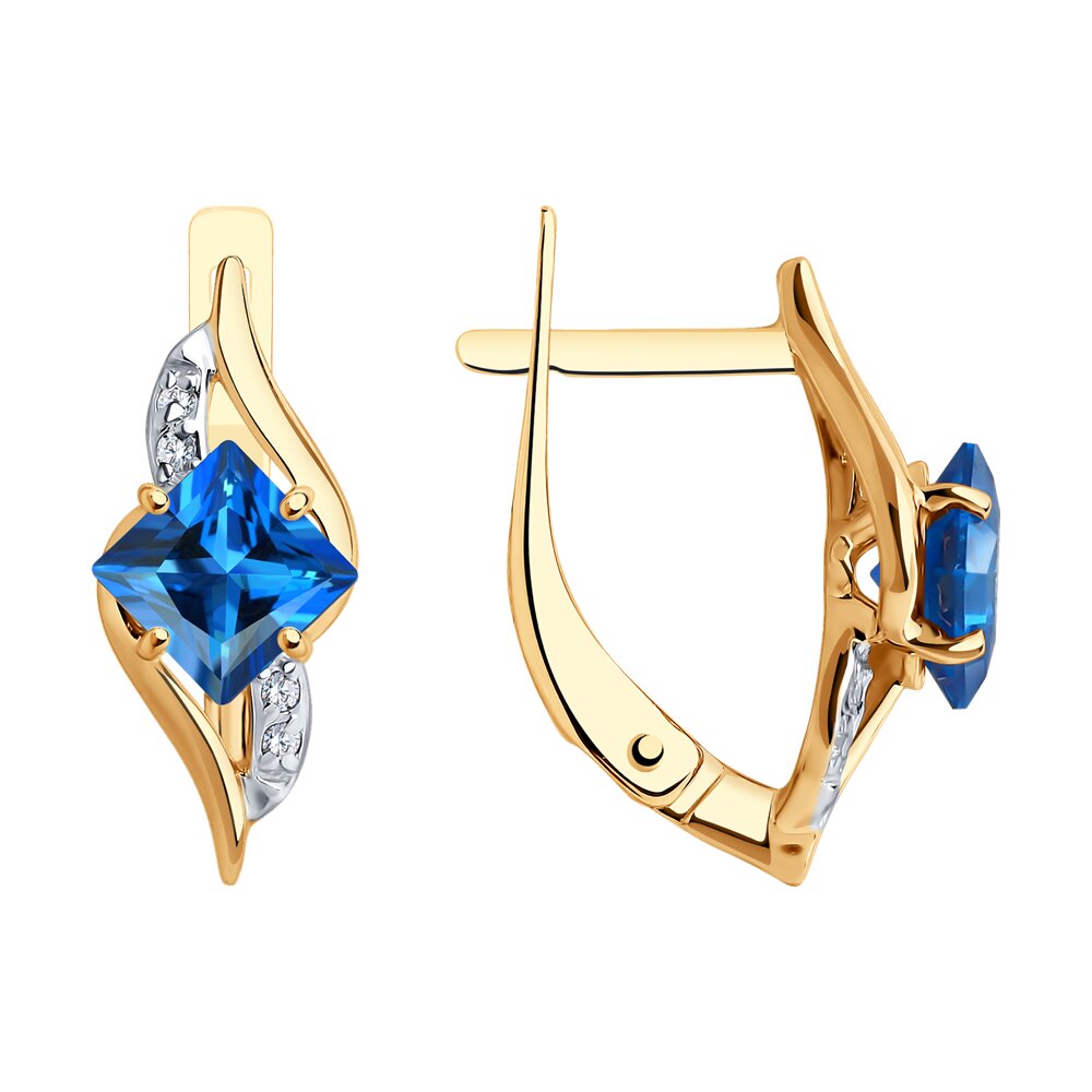 Изящные серьги с яркими топазами Swarovski и кристальными фианитами выполнены из красного золота 585 пробы. Квадратные топазы необычного ярко-синего цвета обращают на себя внимание, превращая украшение в очаровательный акцент привлекательного женственного образа. Приобретайте ювелирные серьги для себя или в подарок выгодным ценам в магазинах Мир Золота.