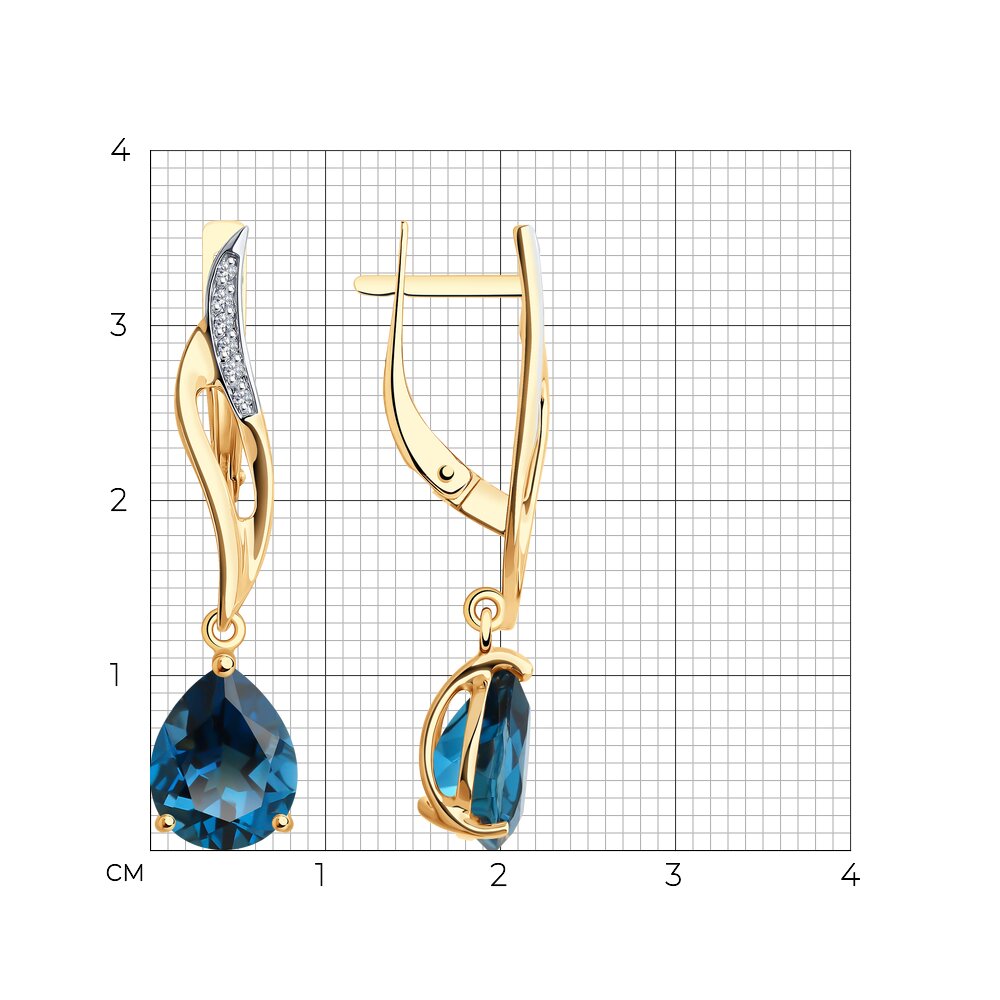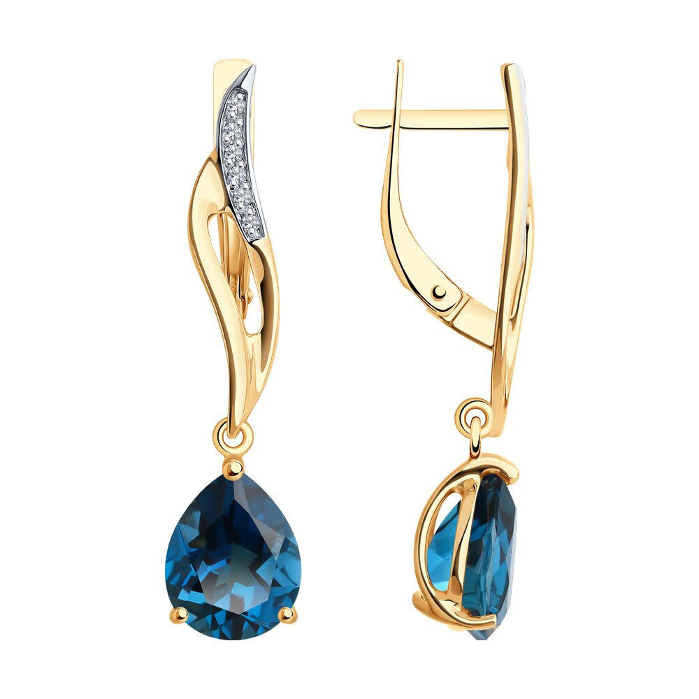 Серьги с подвесками выполнены в изящном дизайне из красного золота 585 пробы, и украшены великолепными натуральными топазами и искристыми фианитами. Очень женственное украшение с переливчатым блеском лондон топазов не останется незамеченными, и будет радовать вас своим безупречным сиянием. Тип замка - английский, надёжно зафиксирует украшение. Приобретайте серьги по выгодной цене в магазинах Мир Золота.