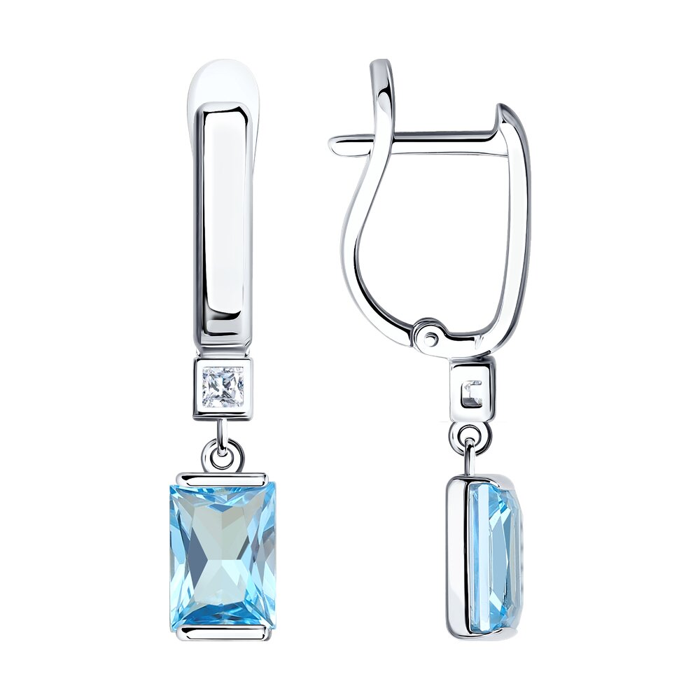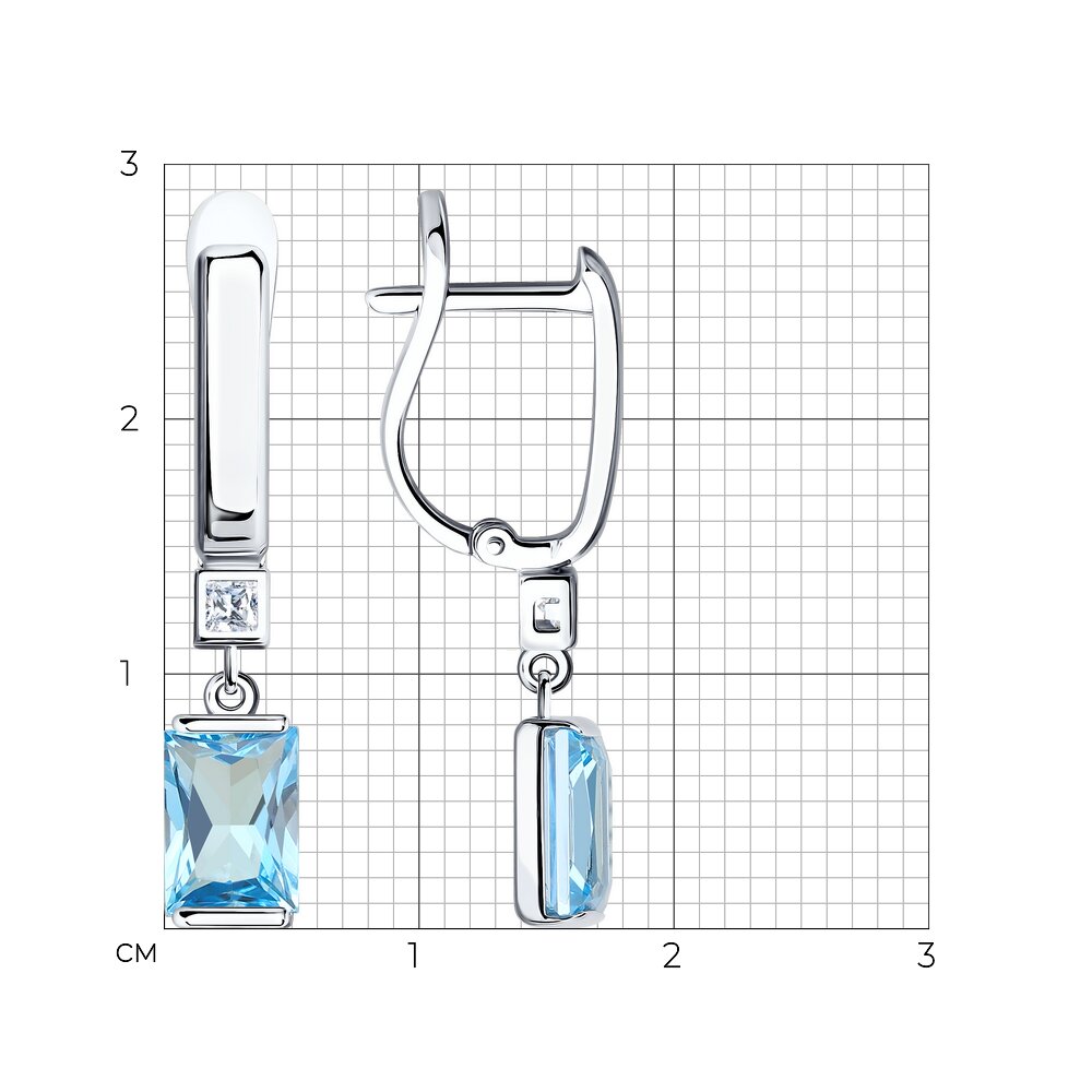 Стильные серьги выполнены из белого золота 585 пробы с натуральными голубыми топазами и кристальными фианитами квадратной формы. Строгая геометрия дизайна с завораживающим прозрачным сиянием ювелирных камней отлично впишется в деловой офисный стиль и динамичные современные образы. Тип замка: английский. Приобретайте актуальное украшение по выгодным ценам в магазинах Мир Золота.
