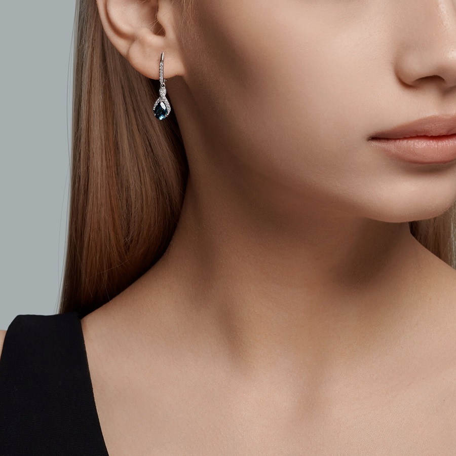 —Серьги из белого золота с топазами и фианитами