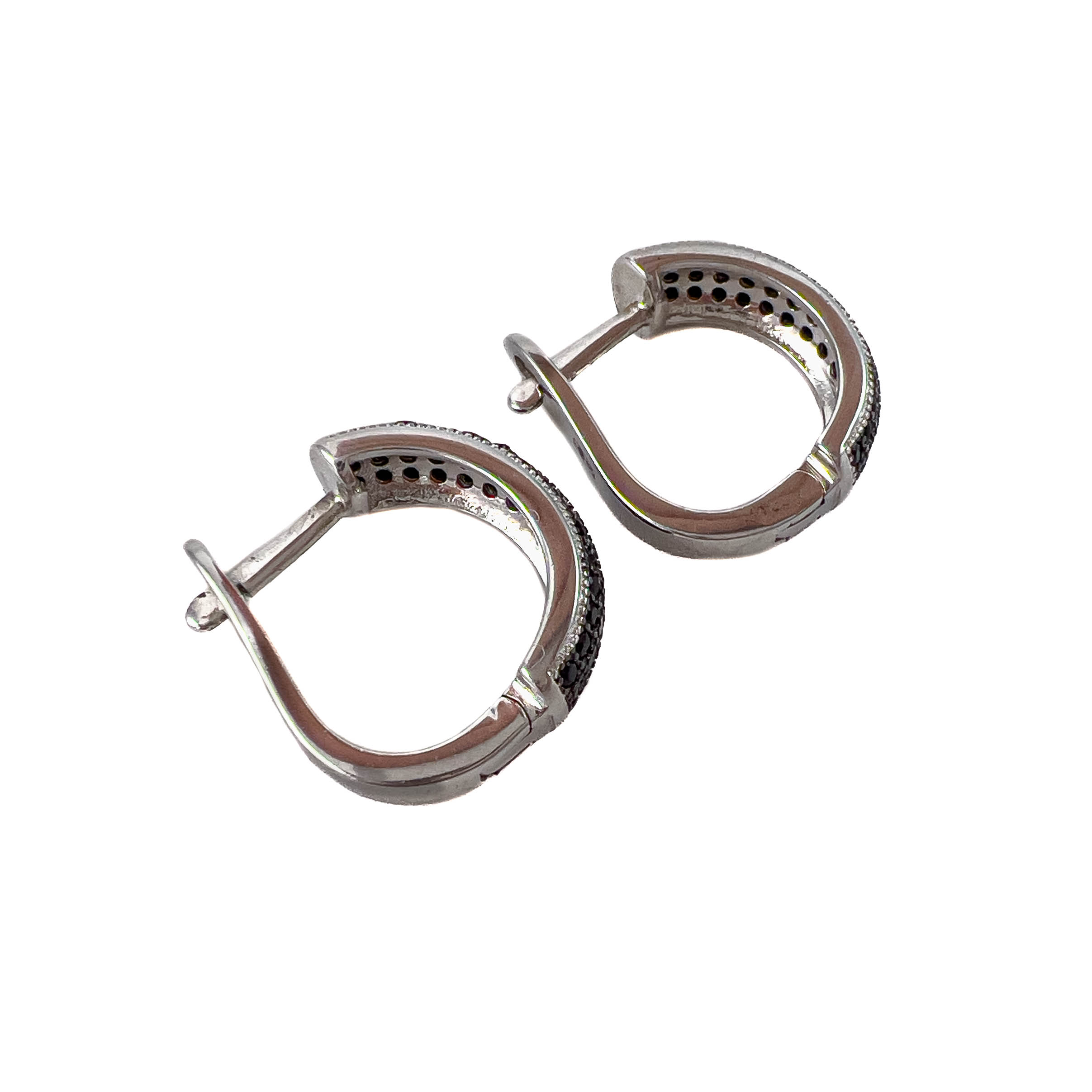 Классические серьги из серебра 925 пробы, украшенные притягательным паве из черных фианитов – запоминающийся подарок для современной девушки. Английский тип замка признан одним из самых надежных и комфортных. Купите серебряные серьги по выгодной цене для себя или в подарок в магазинах Мир Золота.