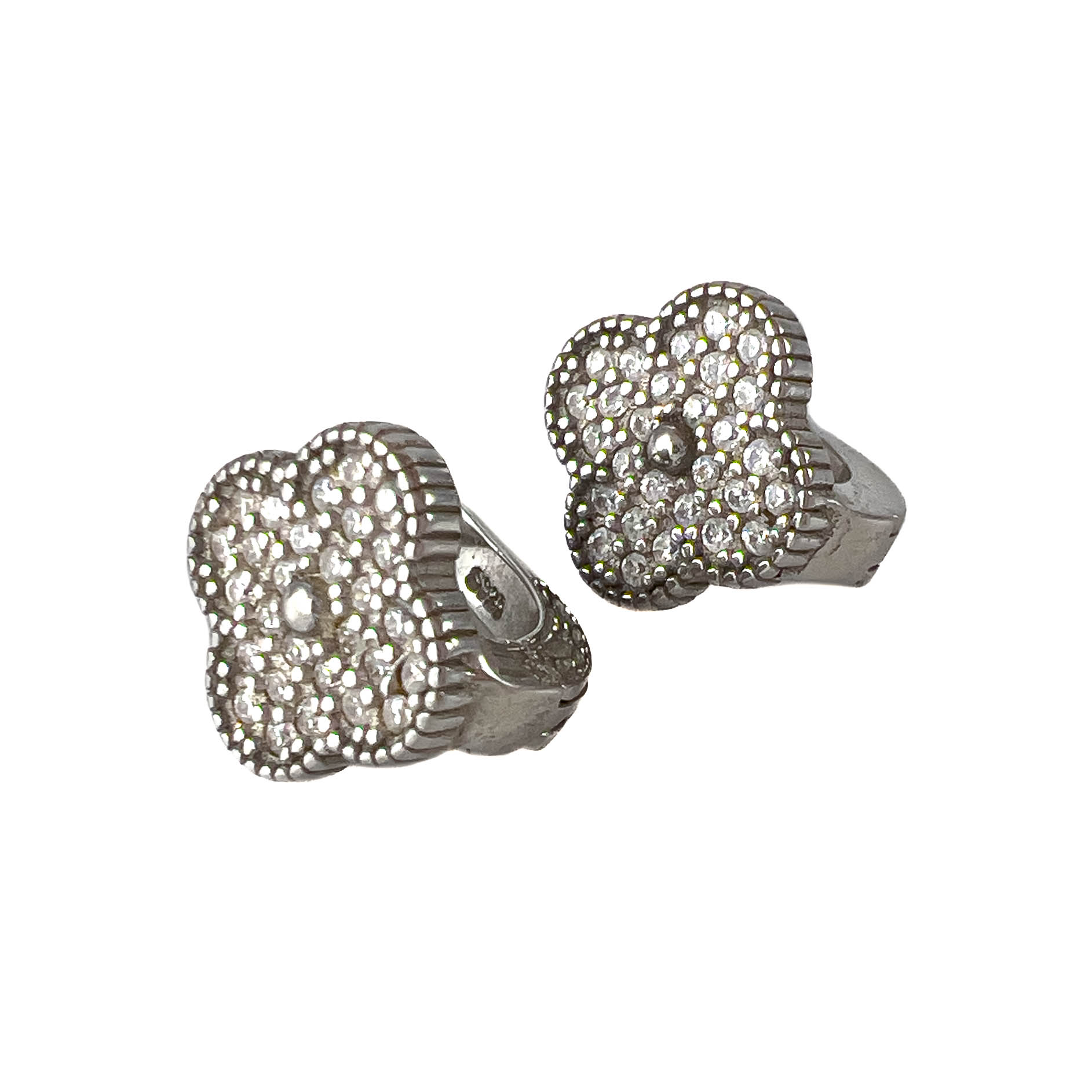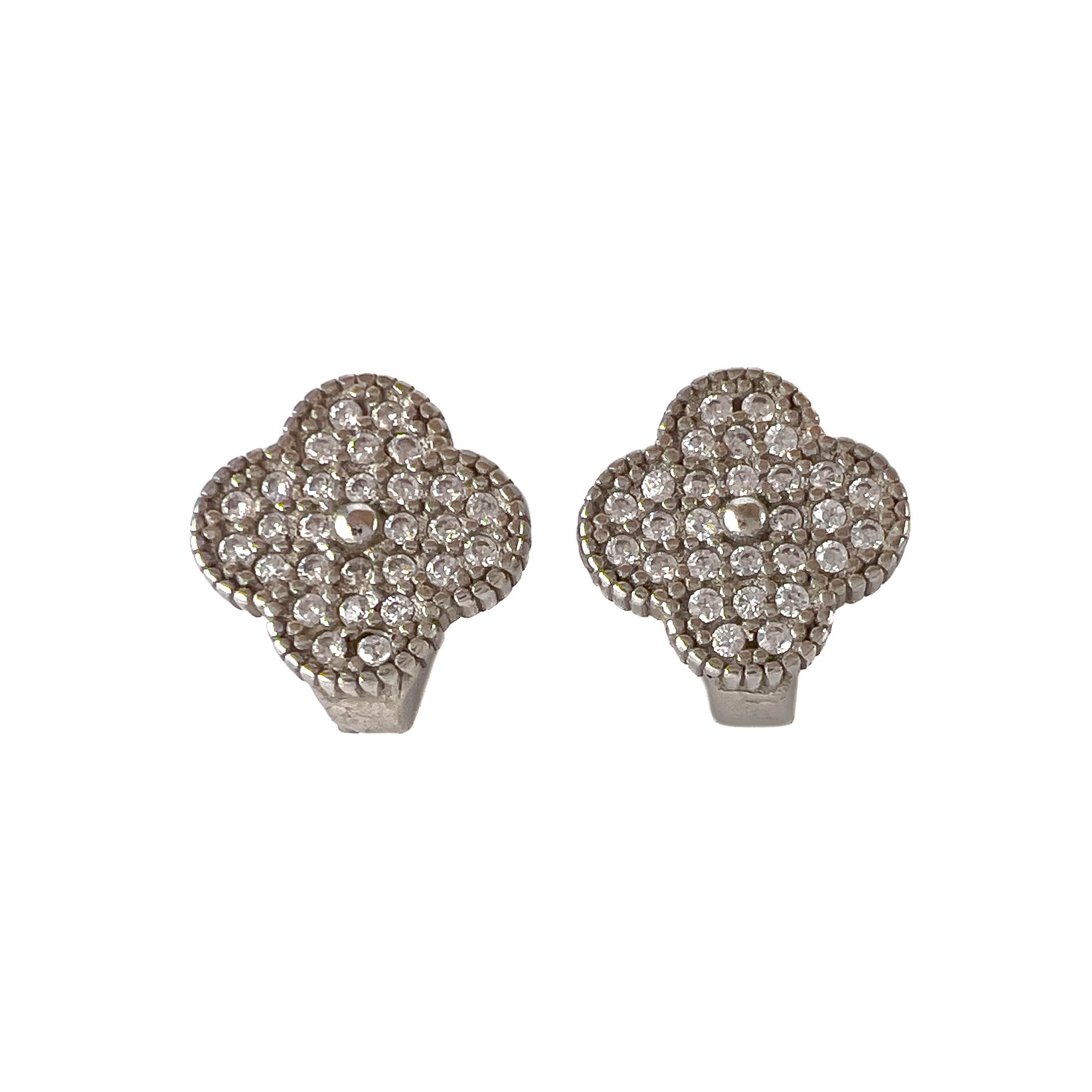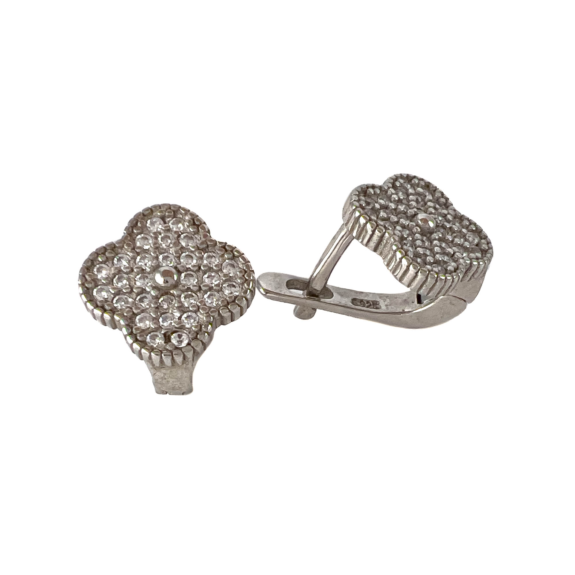 —Серьги из серебра с цирконами в форме клевера
