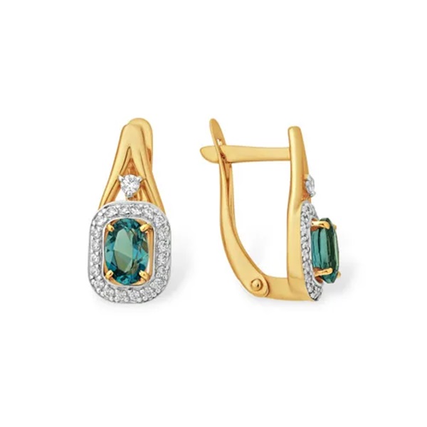 Женские серьги на английском замке, с насыщенным сиянием Лондон топазов в окружении кристальных фианитов, выполнены из красного золота 585 пробы. Элегантное украшение добавит владелице особого шарма и очарования, и станет великолепным аксессуаром для классических и современных образов. Приобретайте серьги для себя или в подарок по выгодной цене в магазинах Мир Золота.