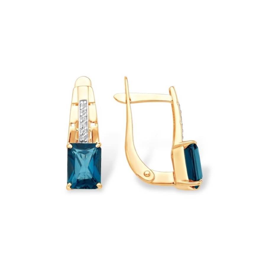 Серьги с английским замком, выполненные в современном дизайне из красного золота 585 пробы, с натуральными топазами и фианитами подчеркнут индивидуальность и женственность владелицы. Яркий акцент лондон топазов выразительной формы огранки привлекает внимание своим неповторимым блеском, и сделает женский образ более притягательным. Приобретайте серьги по выгодной цене в магазинах Мир Золота.