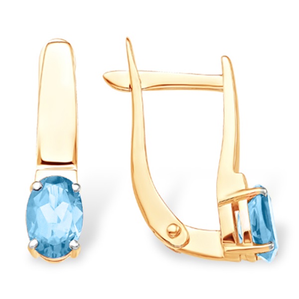 Классические серьги из красного золота 585 пробы украшены натуральными голубыми топазами. Сдержанный дизайн украшения с завораживающим блеском камней станет универсальным дополнением к любому наряду, и очаровательным акцентом женственного образа. Тип замка: английский. Приобретайте ювелирное украшение в подарок по выгодным ценам в магазинах Мир Золота.