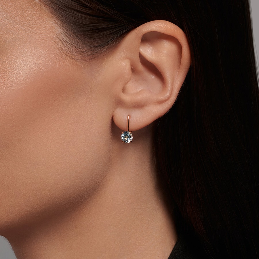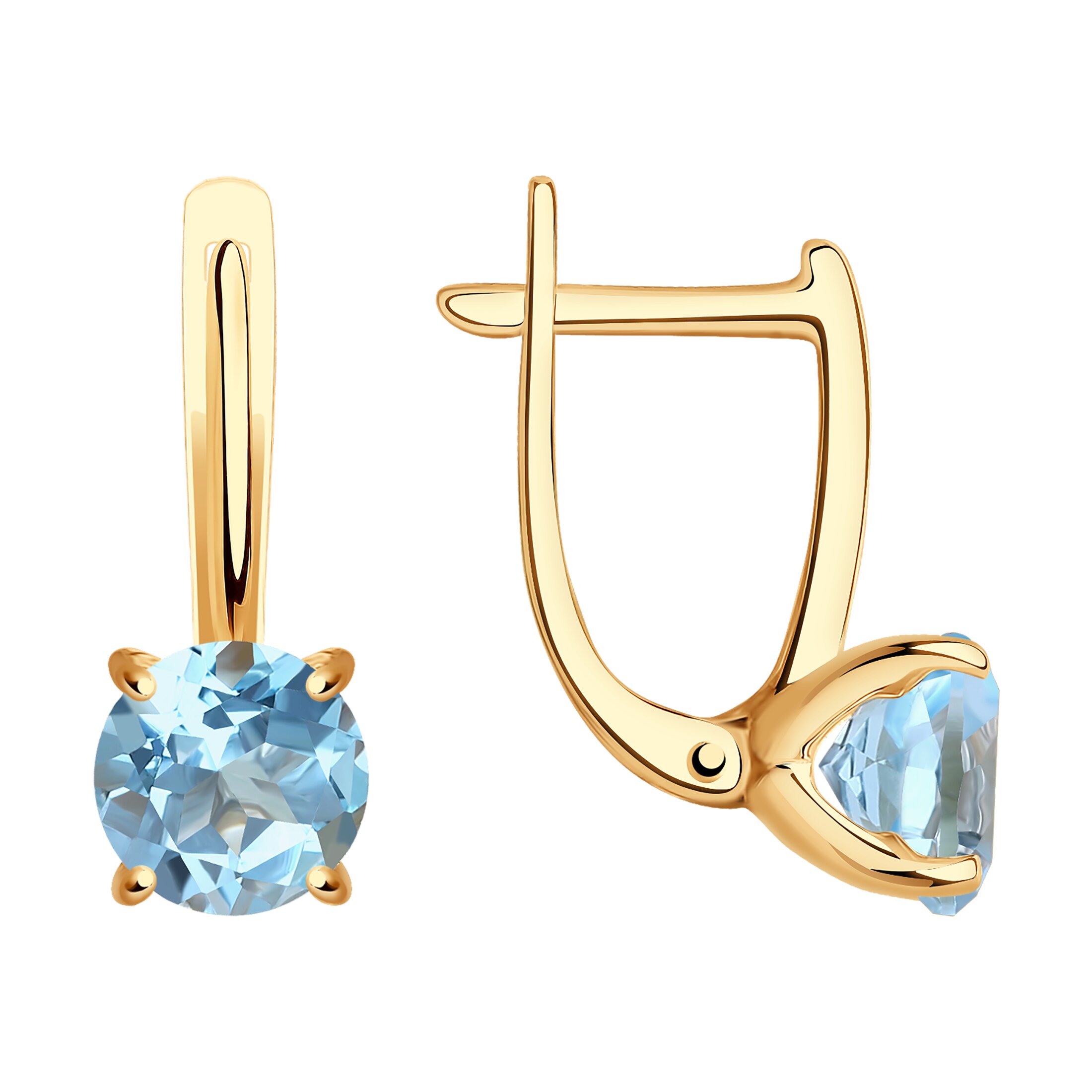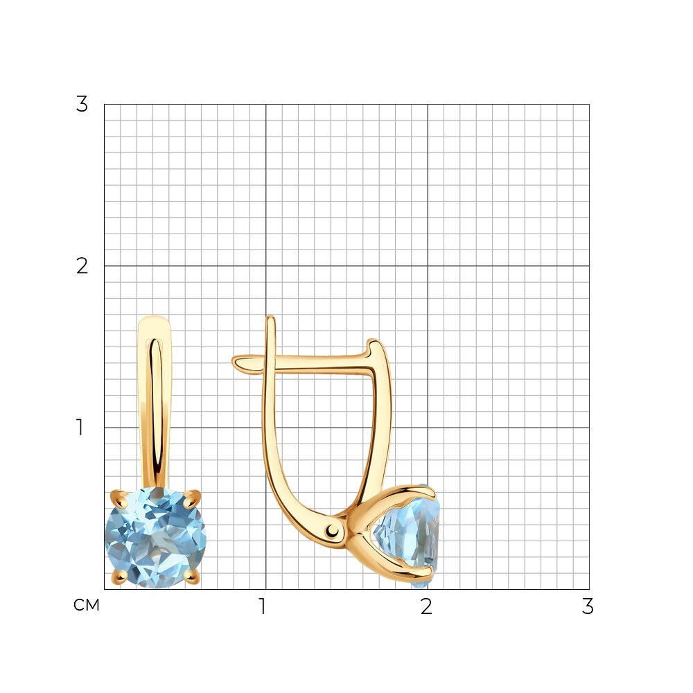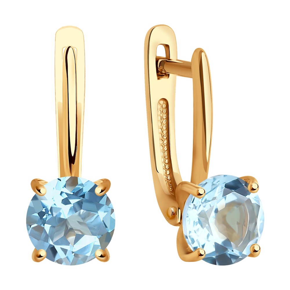 Изящные серьги на английском замке выполнены из красного золота 585 пробы с круглыми топазами. Чудесные топазы нежно-голубого цвета красиво играют на свету и привлекают внимание. Легкие аккуратные серьги лаконичного дизайна, для поклонниц сдержанного стиля, подойдут к любому гардеробу, и будут прекрасным подарком. Приобретайте серьги по выгодной цене в магазинах Мир Золота.