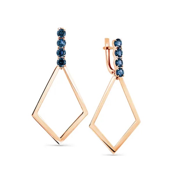 Удлиненные серьги с подвесками из красного золота 585 пробы с натуральными топазами Лондон. Лаконичный дизайн с правильными геометрическими формами и насыщенным блеском камней глубокого синего оттенка смотрится стильно и элегантно, и эффектно дополнит современные образы обладательницы. Приобретайте ювелирное украшение по выгодной цене в магазинах Мир Золота.