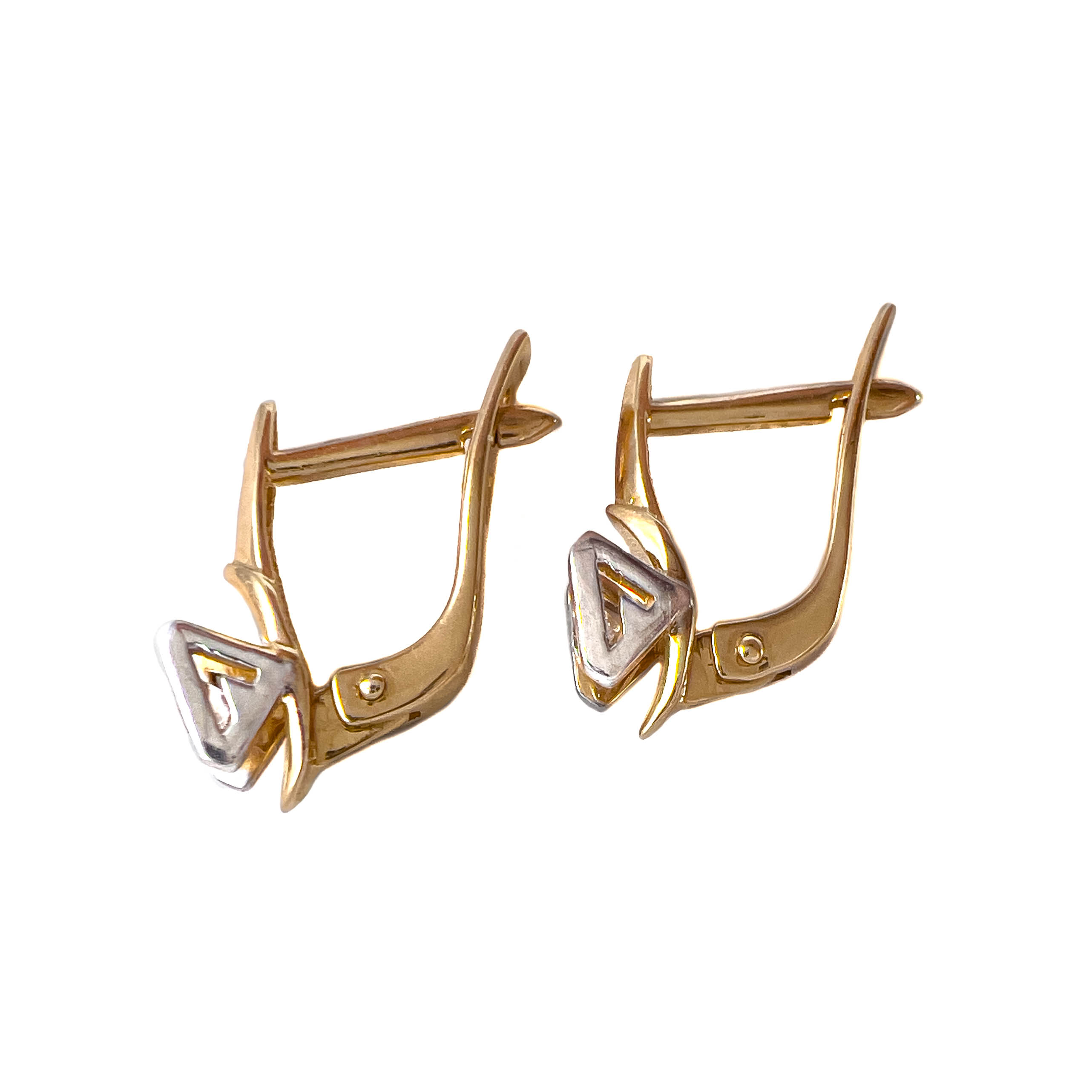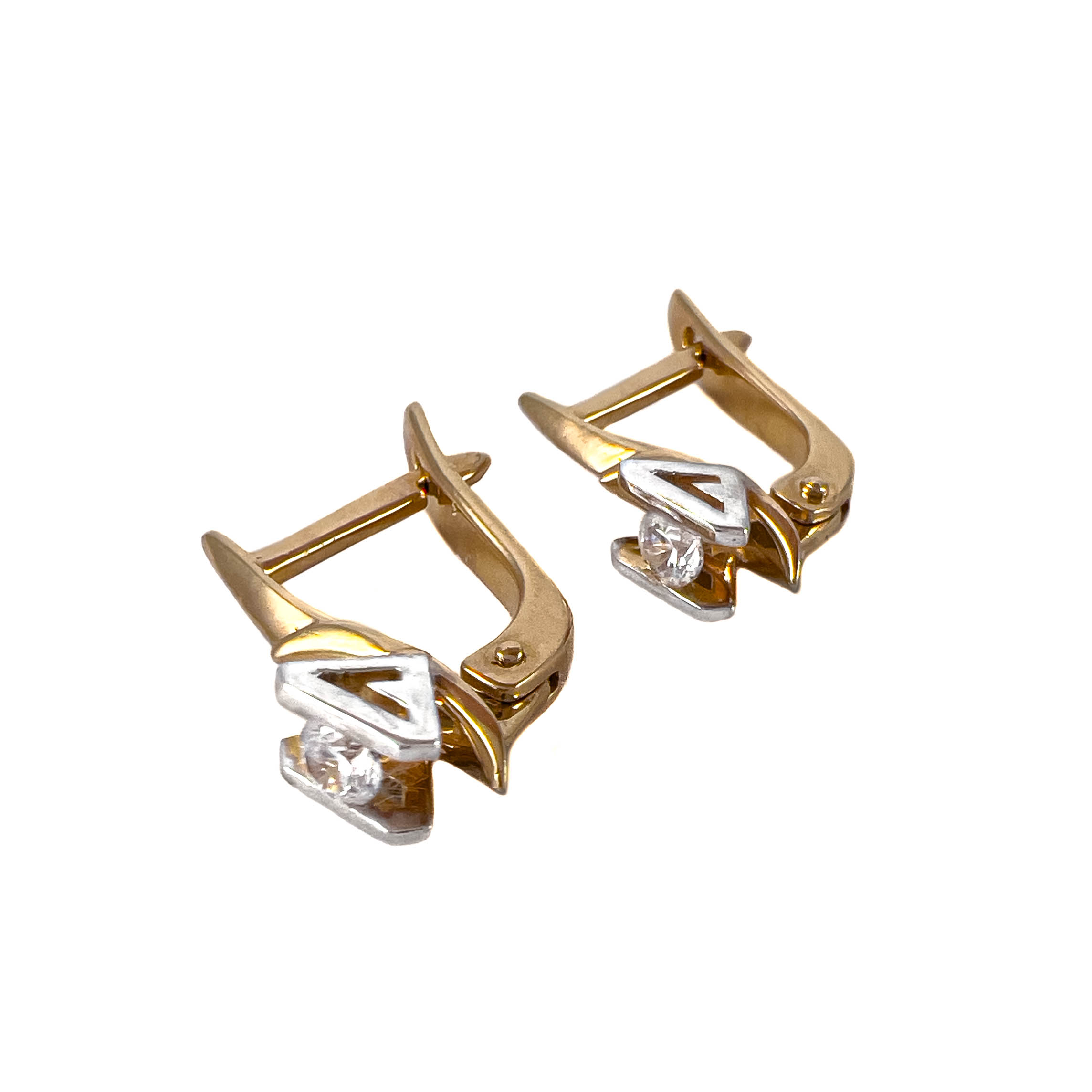 Стильные женские серьги из красного золота 585 пробы с ослепительными фианитами. Акцентные геометричные детали украшения выполнены из белого золота с изумительным сиянием прозрачных камней. Привлекательные серьги эффектно украсят ваш образ, наполнив его нежностью и очарованием. Приобретайте серьги по выгодным ценам в Мир Золота.