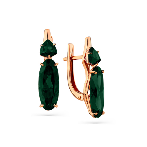 Эффектные серьги из красного золота 585 пробы декорированы великолепными синтетическими турмалинами темно-зеленого оттенка. Яркое украшение с насыщенным сиянием ювелирных камней не останется незамеченным, и станет стильным дополнением современных образов владелицы. Тип замка - английский, надежно зафиксирует украшение. Приобретайте серьги по выгодной цене в магазинах Мир Золота.