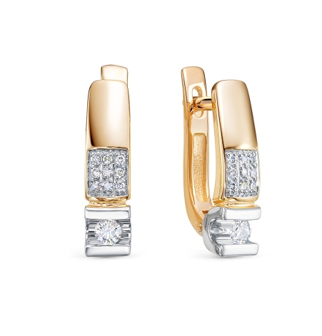 Серьги на английском замке из красного золота 585 пробы декорированы сияющими бриллиантами. Выразительные закрепки из белого золота выгодно акцентируют драгоценные бриллианты, подчеркивая их неотразимую красоту и чистый кристальный блеск. Украшение выглядит стильно и элегантно, и будет достойным подарком для женщины. Покупайте серьги по выгодной цене в магазинах Мир Золота.