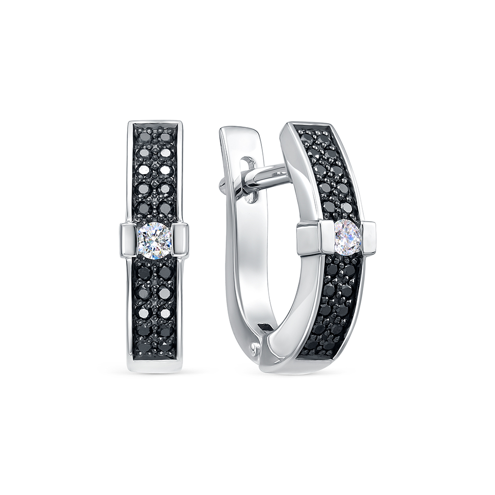 Яркие серьги из белого золота 585 пробы с центральными вставками с натуральными бриллиантами и дорожками из черных бриллиантов станут притягательным акцентом современного женского образа. Стильное украшение с завораживающей магией черных драгоценных камней приковывает внимание, и подчеркнет изысканный вкус владелицы. Тип замка: английский. Приобретайте серьги в подарок по выгодной цене в магазинах Мир Золота.