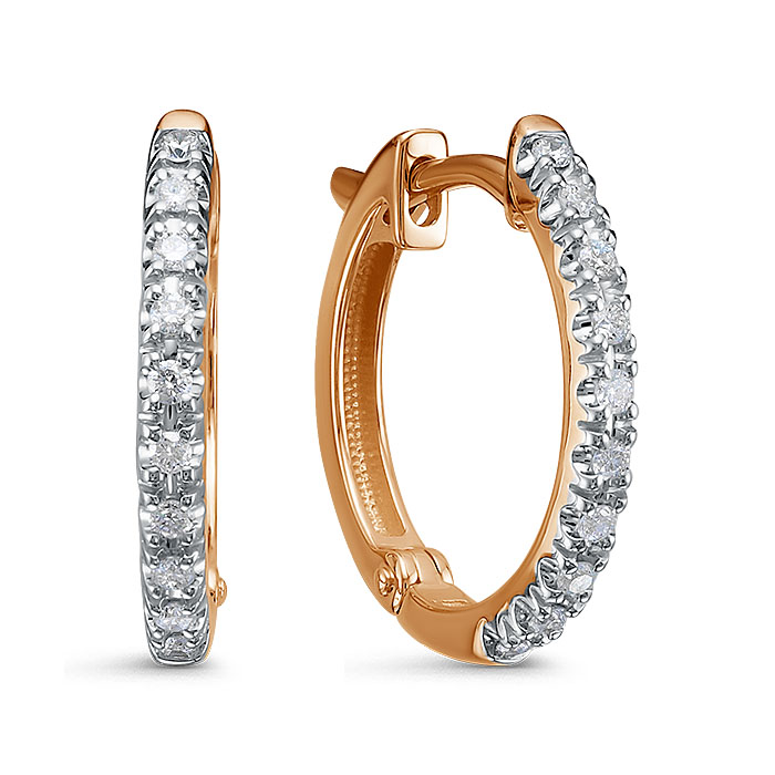 Серьги из красного золота 585 пробы с дорожками сияющих бриллиантов великолепно украсят современные образы владелицы. Благородный блеск золота выгодно подчеркивает изысканное сияние и красоту драгоценных камней. Классический дизайн будет одинаково элегантно смотреться и с повседневными, и с вечерними нарядами. Приобретайте серьги в подарок по выгодным ценам в магазинах Мир Золота.