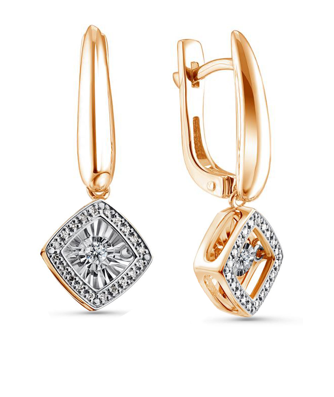 Серьги с подвесками в форме ромба из красного золота 585 пробы с драгоценными бриллиантами сделают образ владелицы более стильным и привлекательным. Центральные вставки из белого золота с «танцующими» бриллиантами завораживают взгляд, алмазная грань создает эффект дополнительного сияния. Украшение станет изысканной деталью женского образа, наполнив его недостающим блеском и особым очарованием. Приобретайте серьги по выгодным ценам в магазинах Мир Золота.