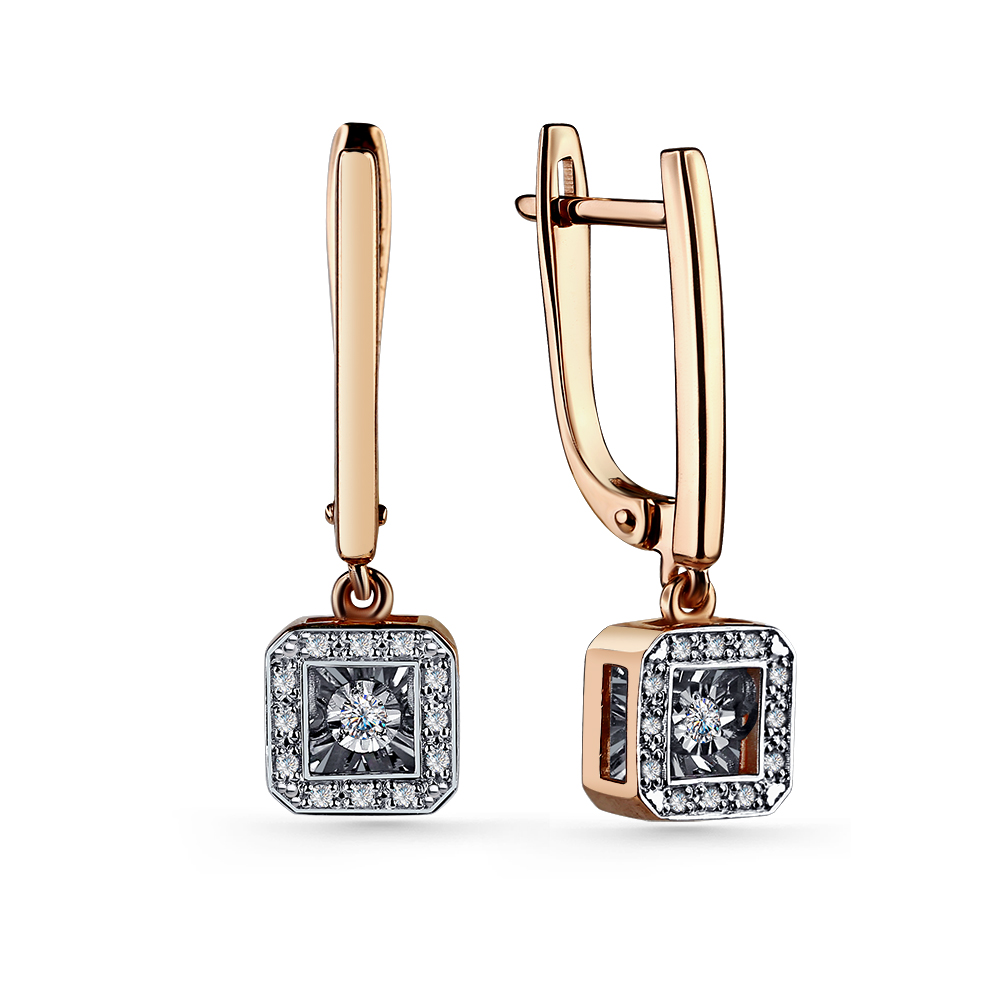 Серьги с подвесками из красного золота 585 пробы с «танцующими» бриллиантами понравятся поклонницам современных трендов. Вставки из белого золота выгодно подчеркивают природную красоту и мерцающий блеск камней, алмазная грань создает эффект дополнительного сияния. Элегантное украшение станет изысканной деталью женского образа, наполнив его недостающим блеском и очарованием. Приобретайте серьги по выгодным ценам в магазинах Мир Золота.