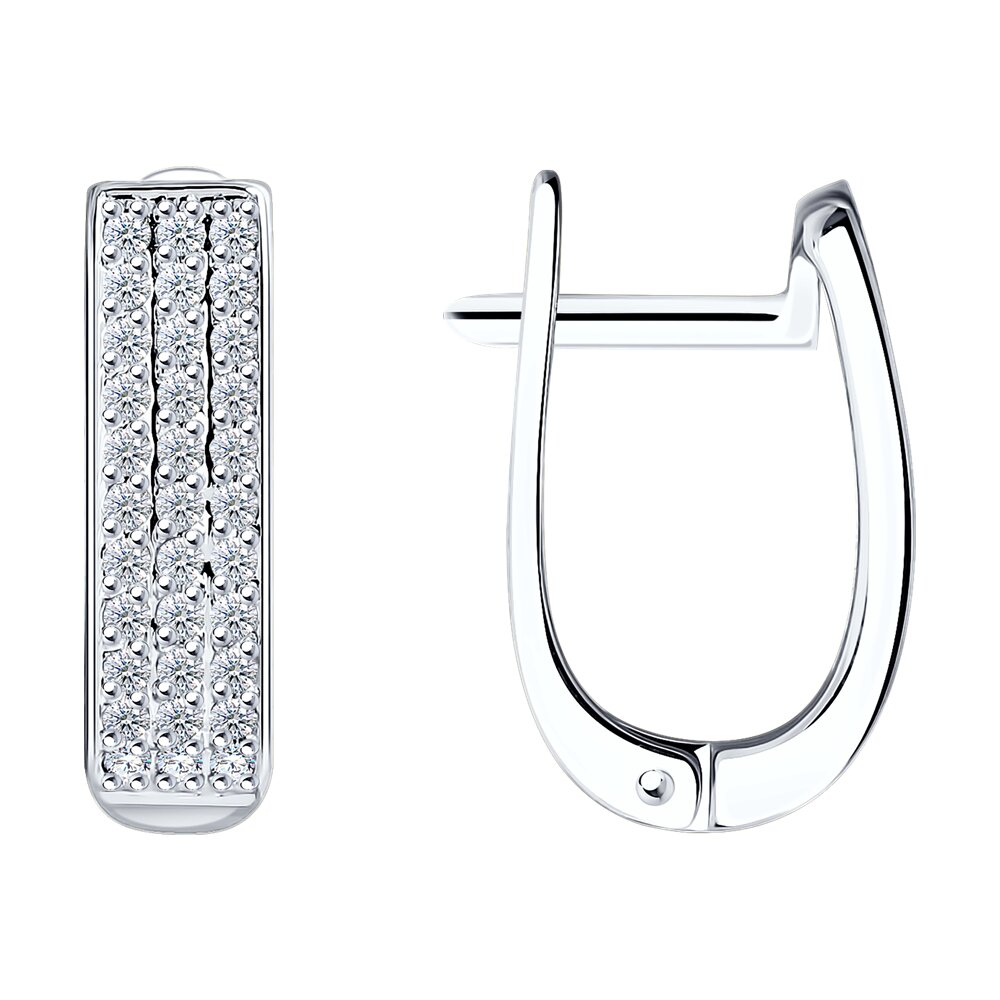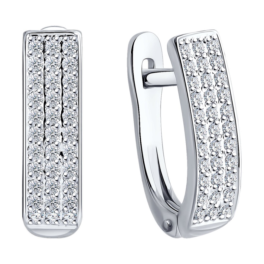 Элегантные серьги из белого золота 585 пробы с дорожками прозрачных бриллиантов не оставят женщину равнодушной. Блистательное украшение с драгоценным сиянием натуральных камней станет ярким и стильным дополнением безупречного женского образа. Практичный и надежный английский замок комфортен в использовании. Приобретайте серьги по выгодным ценам в магазинах Мир Золота.
