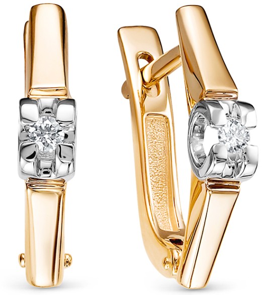 Серьги из красного золота 585 пробы декорированы яркими акцентами сияющих бриллиантов. Выразительные закрепки из белого золота выгодно акцентируют драгоценные камни классической формы огранки, и эффектно подчеркивают их чистый кристальный блеск. Украшение стильно и элегантно смотрится, и станет изысканным дополнением современного образа. Приобретайте серьги по выгодной цене в магазинах Мир Золота.