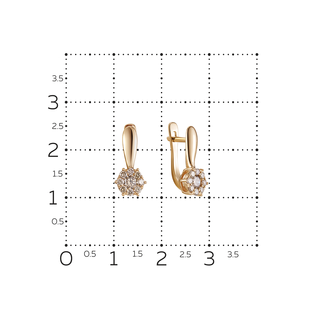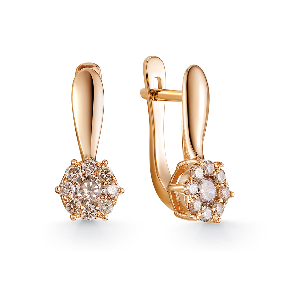 Серьги классического дизайна из красного золота 585 пробы украшены россыпью коньячных бриллиантов коньячного оттенка. Уникальная невидимая закрепка бриллиантов создает иллюзию более крупных камней и многократно усиливает их блеск. Изящное и женственное украшение с эффектным золотистым сиянием драгоценных камней станет яркой деталью различных образов. Приобретайте серьги по выгодным ценам в магазинах Мир Золота.