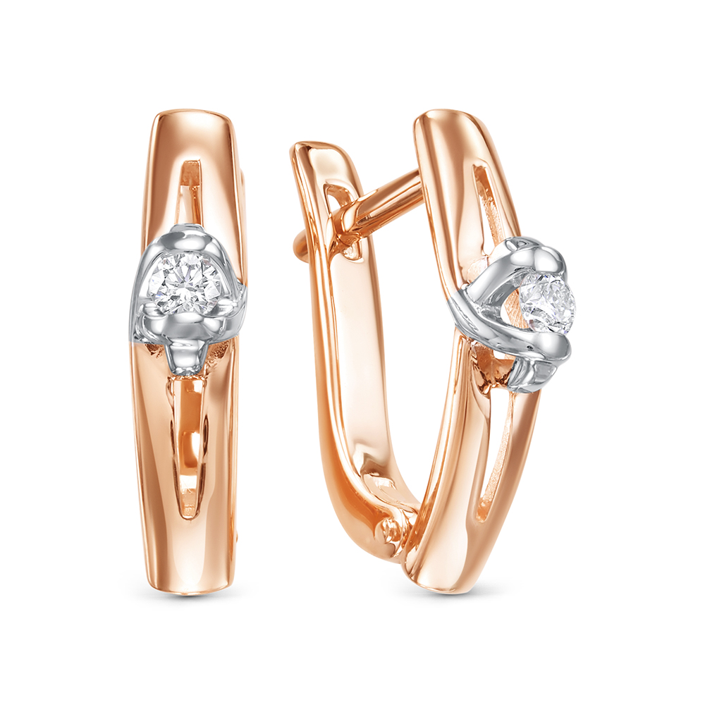 Серьги из красного золота 585 пробы с драгоценными бриллиантами станут прекрасным дополнением повседневного образа. Закрепки из белого золота выгодно акцентируют бриллианты, традиционная форма огранки подчеркивает всю прелесть и красоту натуральных камней. Приобретайте ювелирное украшение для себя или в подарок по выгодным ценам в магазинах Мир Золота.