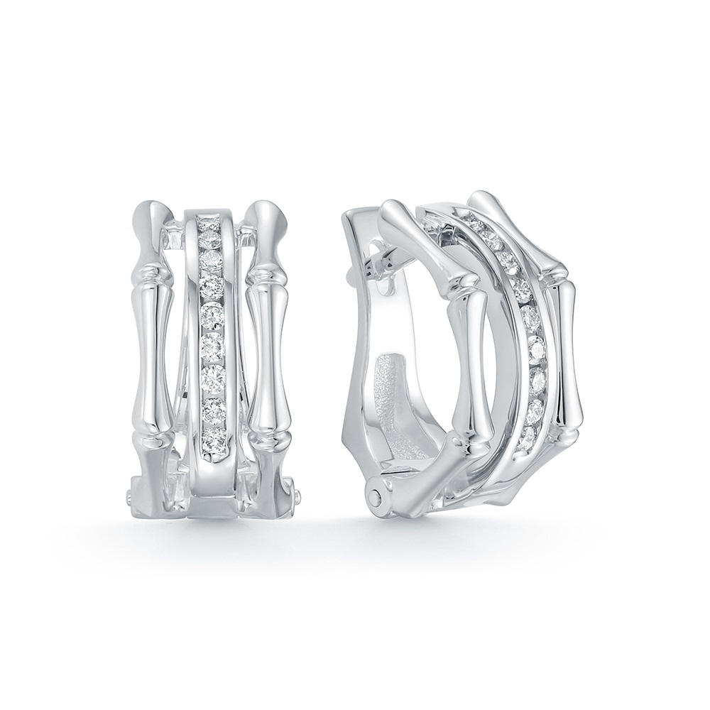Объемные серьги интересного ювелирного дизайна из белого золота 585 пробы с дорожками ослепительных бриллиантов непременно привлекут внимание окружающих. Стильный аксессуар оригинально смотрится, и подойдет для ярких и современных поклонниц массивных ювелирных украшений, подчеркнув индивидуальный образ обладательницы. Приобретайте эффектные серьги выгодно в магазинах Мир Золота.