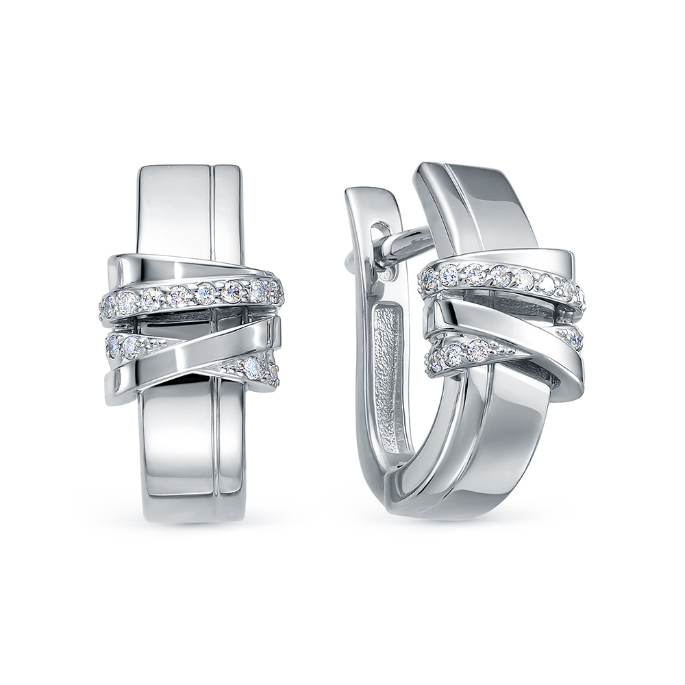Объемные серьги оригинального ювелирного дизайна из белого золота 585 пробы с дорожками великолепных бриллиантов. Чистый кристальный блеск драгоценных камней в сочетании с холодным оттенком золота приковывает внимание, и не оставит женщину равнодушной. Изысканное украшение станет стильным дополнением модных образов современной леди. Приобретайте актуальные серьги выгодно в магазинах Мир Золота.