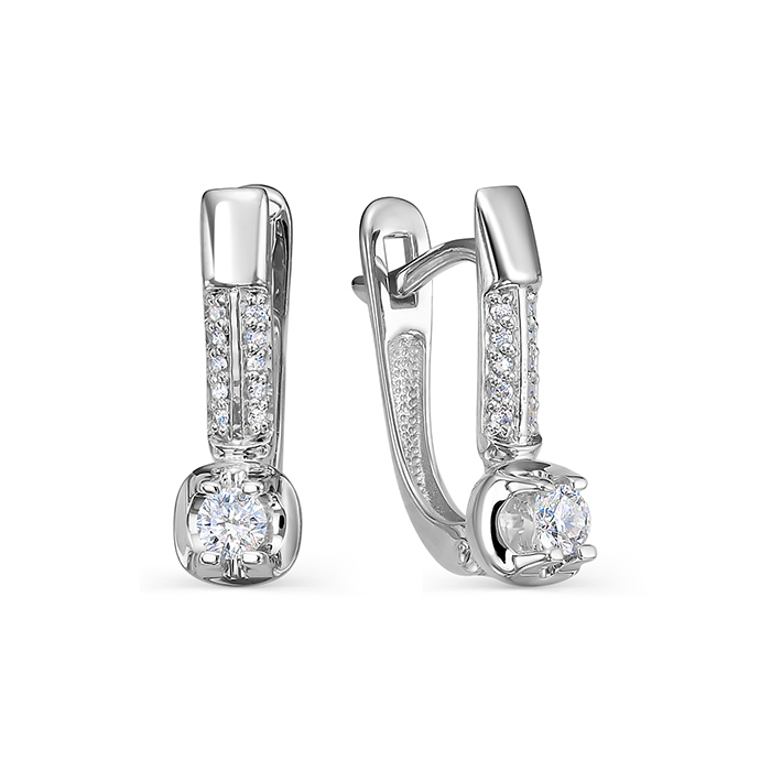 Серьги из белого золота 585 пробы с драгоценными бриллиантами заметно преобразят привычный женский образ. Благородное золото выгодно акцентирует драгоценные камни, подчеркивая их природную красоту и неповторимое сияние. Украшение эффектно дополнит как повседневный, так и вечерний наряд, и будет прекрасным подарком по любому поводу. Приобретайте серьги выгодно в магазинах Мир Золота.