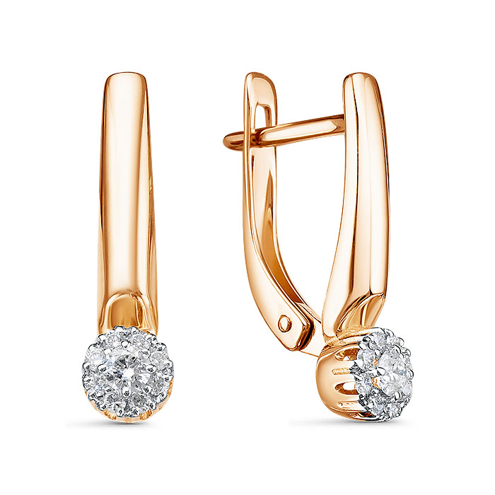 Серьги из красного золота 585 пробы с сияющими вставками с натуральными бриллиантами станут изюминкой женственного образа. Восхитительный блеск драгоценных камней завораживает взгляд, и подчеркнет очарование и изысканный вкус владелицы. Практичный и надежный английский замок комфортен в использовании. Приобретайте украшение для себя или в подарок по выгодным ценам в магазинах Мир Золота.