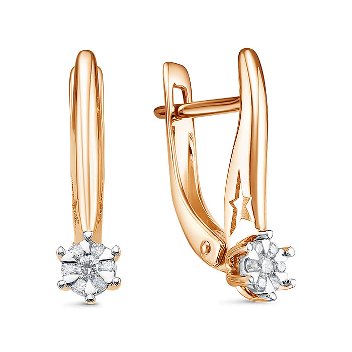 Женские серьги привлекательного дизайна с изящными вставками с натуральными бриллиантами выполнены из красного золота 585 пробы. Изумительное украшение станет прекрасным подарком для женщины, и наполнит привычный повседневный образ особым шармом и очарованием. Приобретайте серьги с комфортным английским замком по выгодным ценам в магазинах Мир Золота.