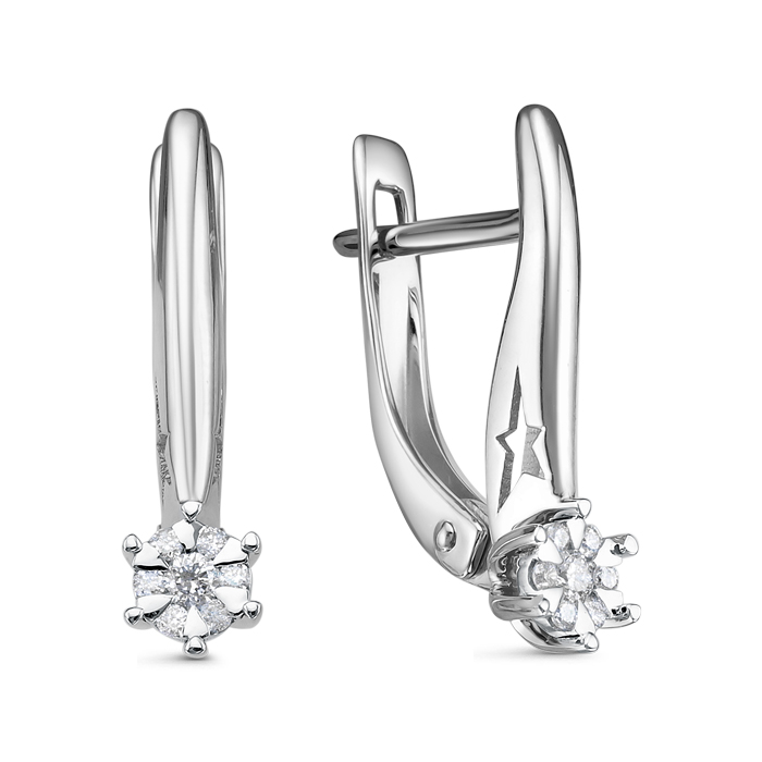 Женские серьги привлекательного дизайна с изящными вставками с натуральными бриллиантами выполнены из белого золота 585 пробы. Изумительное украшение станет прекрасным подарком для женщины, и наполнит привычный повседневный образ особым шармом и очарованием. Приобретайте серьги с комфортным английским замком по выгодным ценам в магазинах Мир Золота.