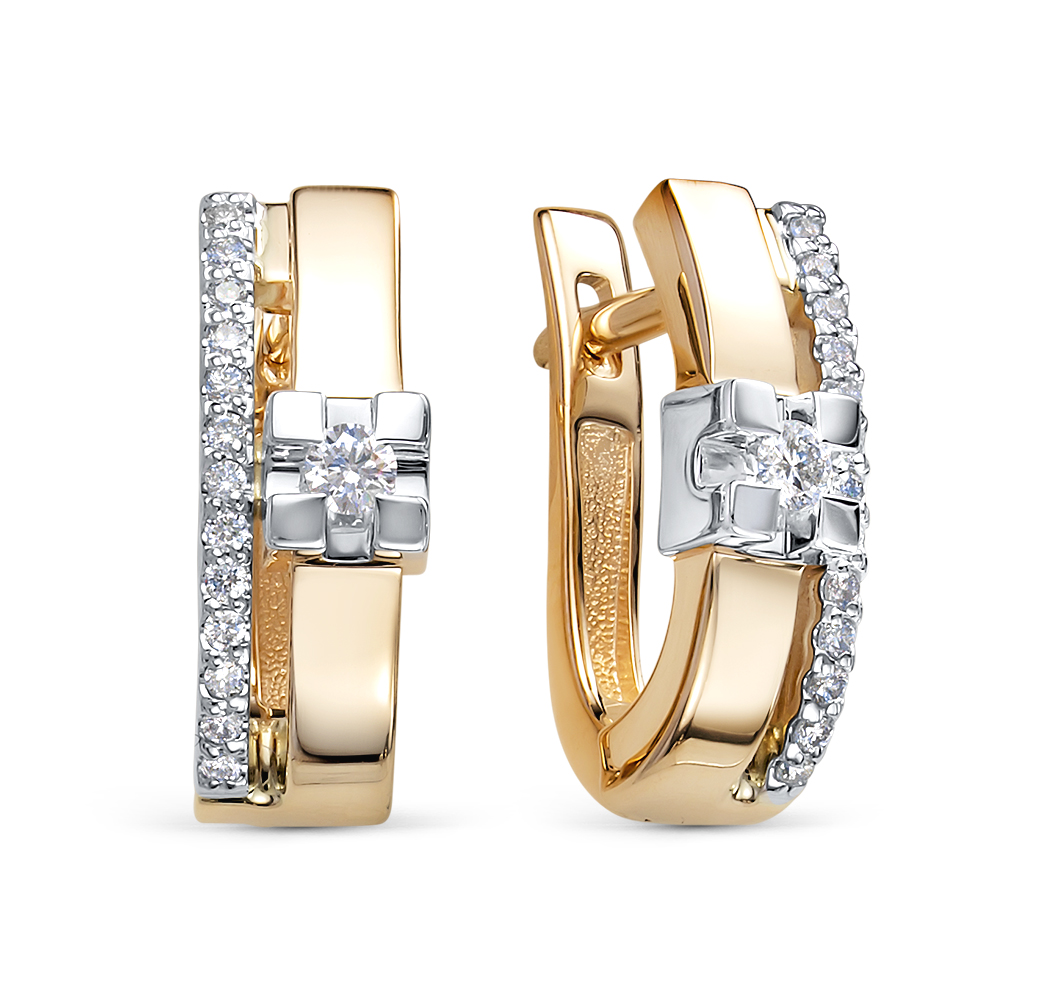 Элегантные серьги из красного золота 585 пробы с натуральными бриллиантами будут прекрасным выбором для современной леди. Украшение с изысканным сиянием драгоценных камней смотрится стильно и достойно, и подчеркнет безупречный образ обладательницы. Практичный английский замок комфортен в использовании. Приобретайте ювелирное украшение выгодно в магазинах Мир Золота.